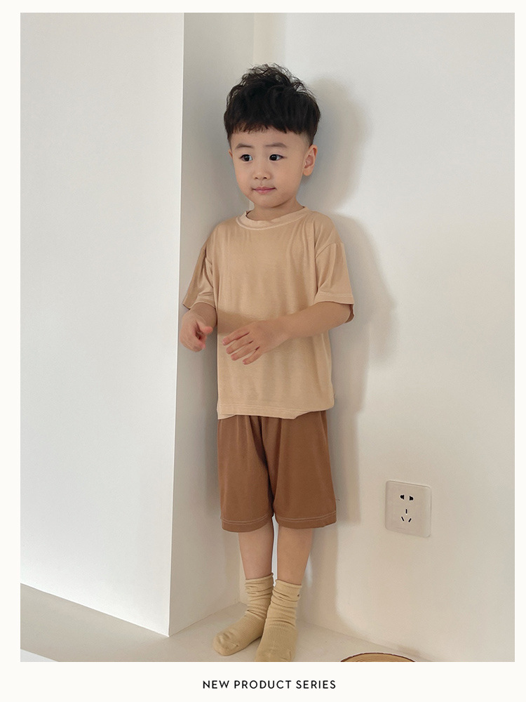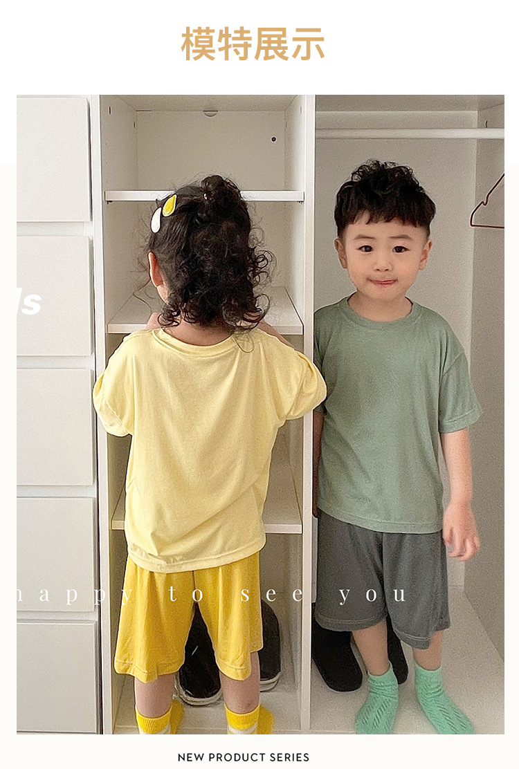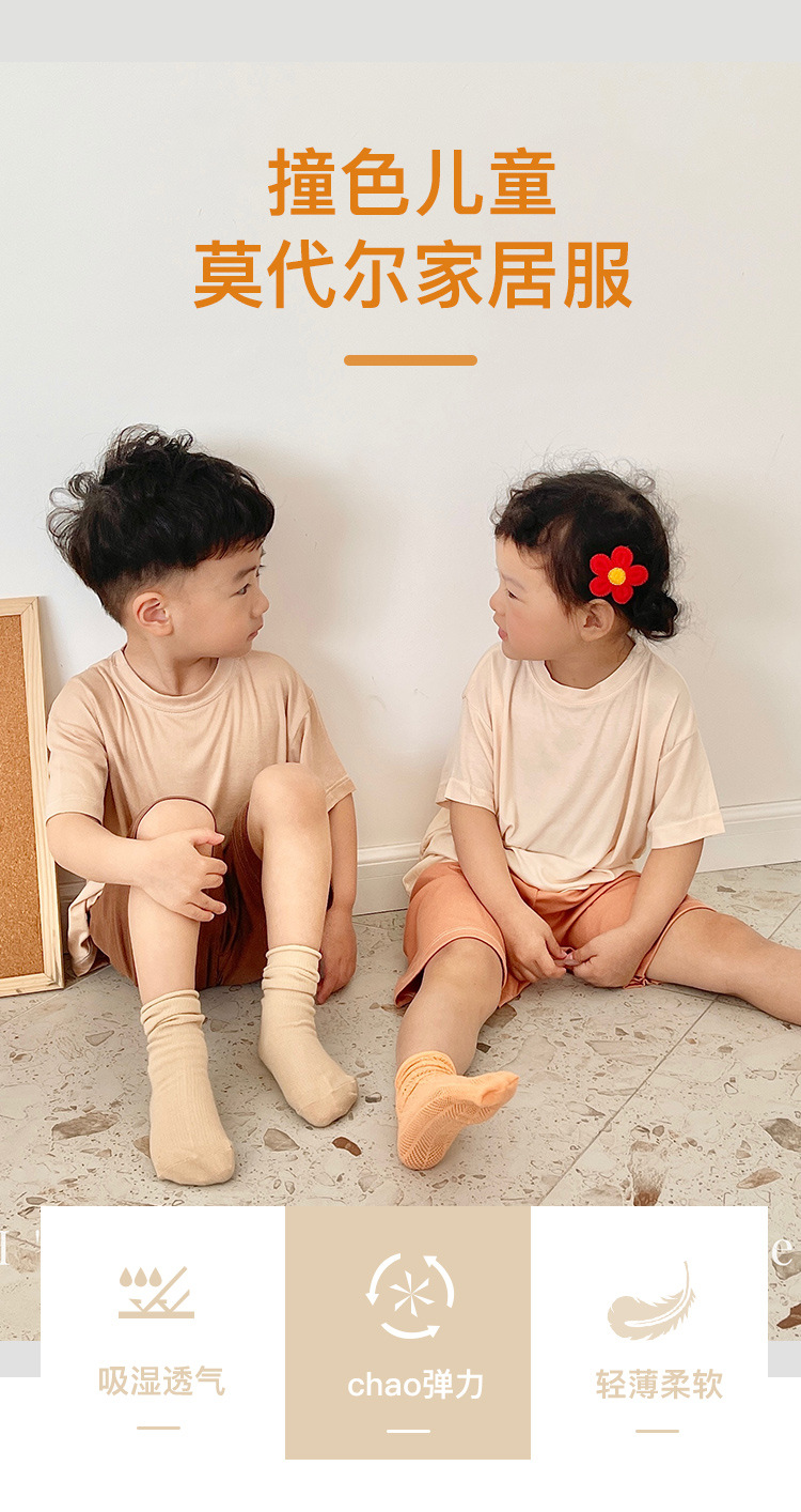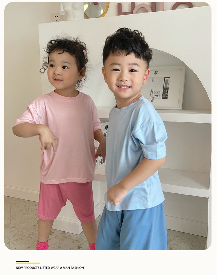 어린이 잠옷 여름 클래스 A 모달면 얇은 통기성 소년과 소녀 반팔 가정 의류 세트 중간 어린이 여름스토어 가기