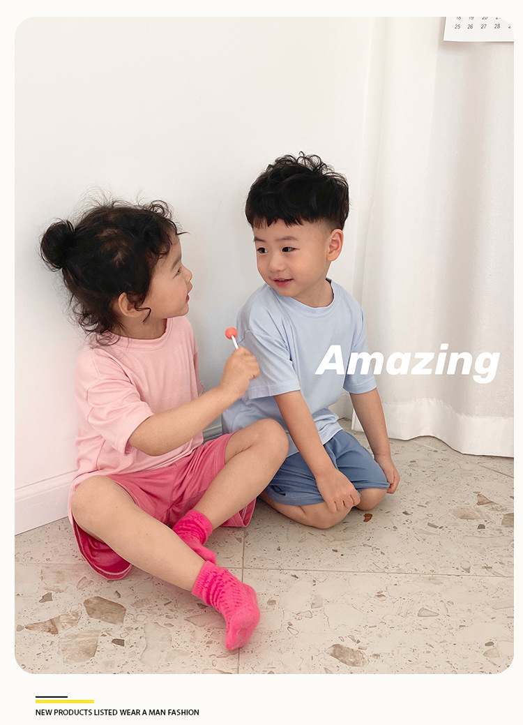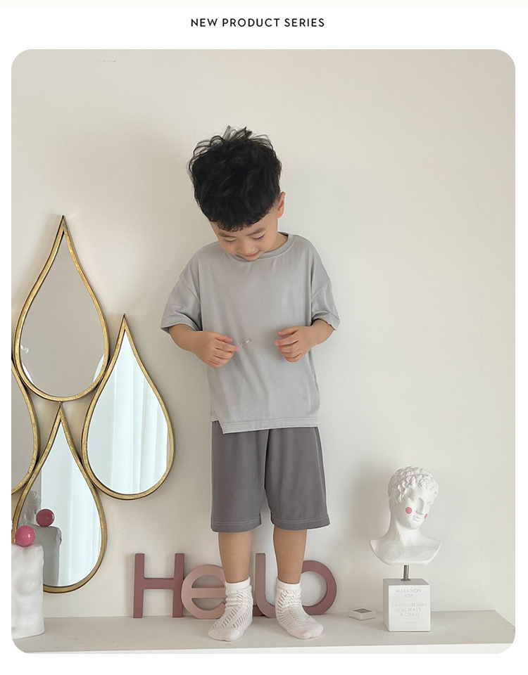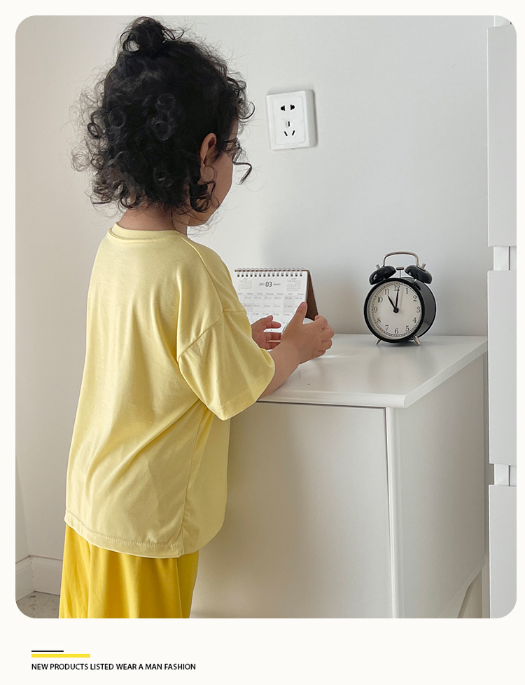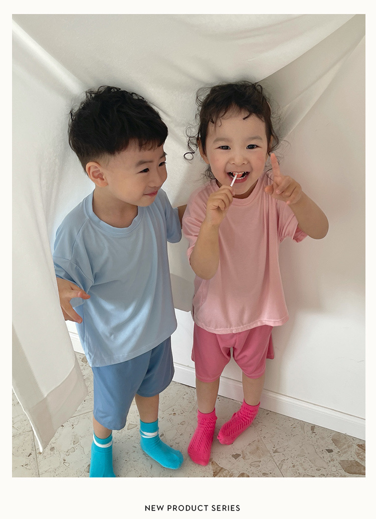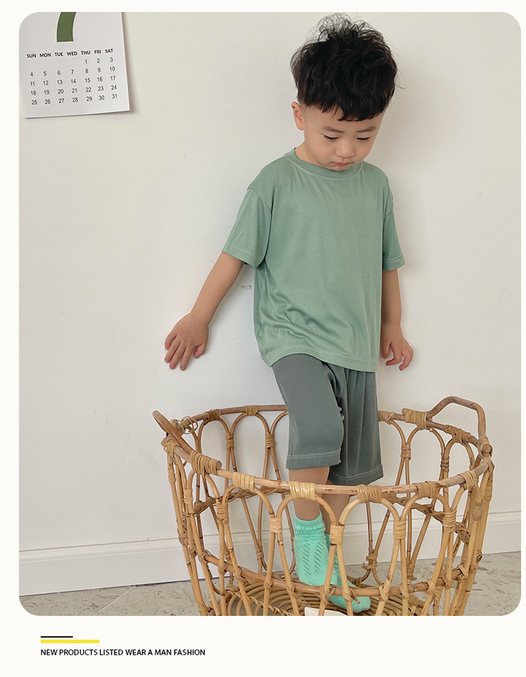어린이 잠옷 여름 클래스 A 모달면 얇은 통기성 소년과 소녀 반팔 가정 의류 세트 중간 어린이 여름스토어 가기