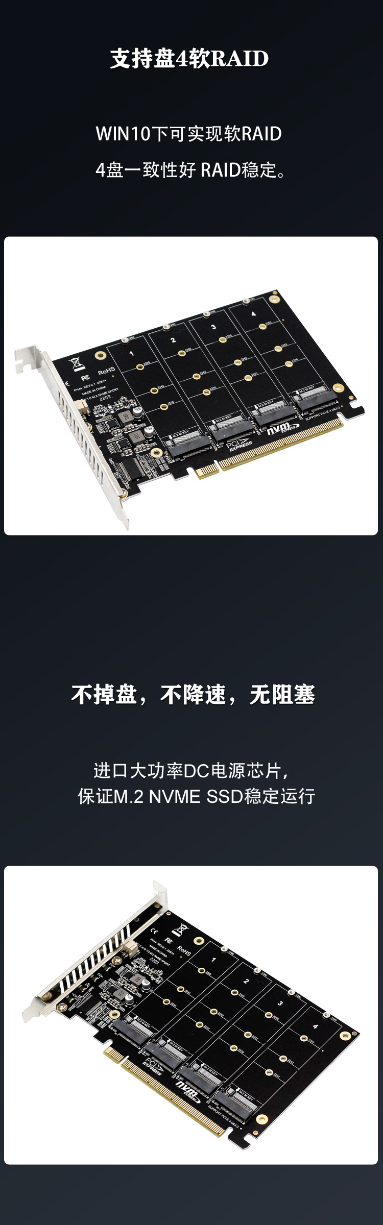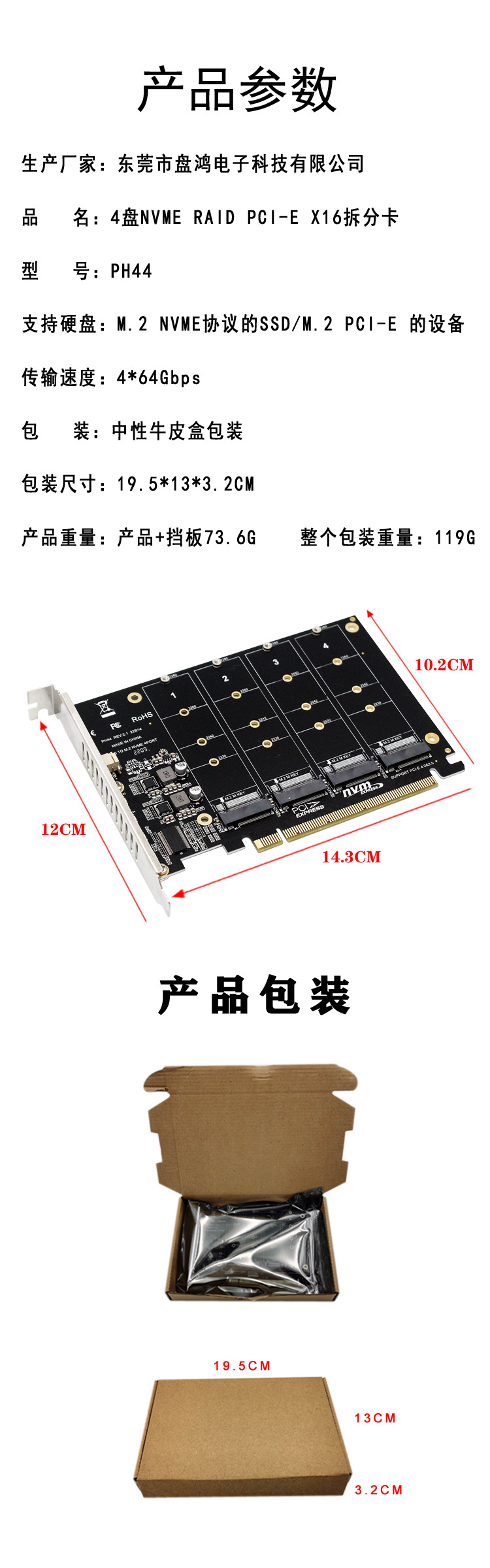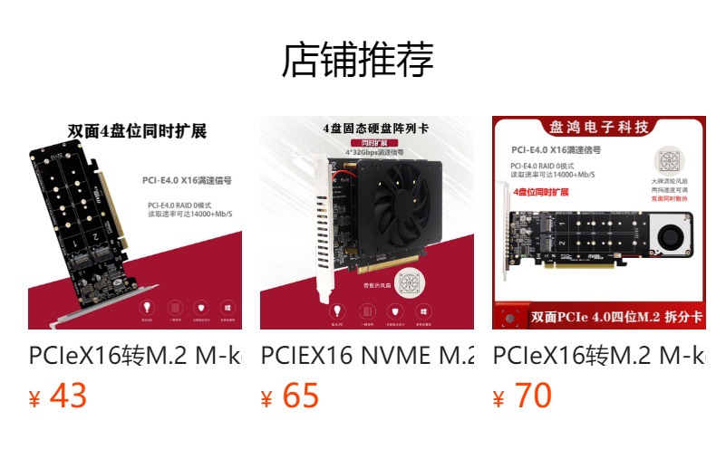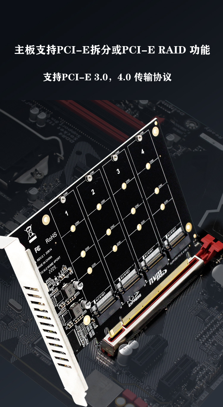 PH44 NVME 4 디스크 배열 카드 PCIE 신호 분할 배열 카드스토어 가기