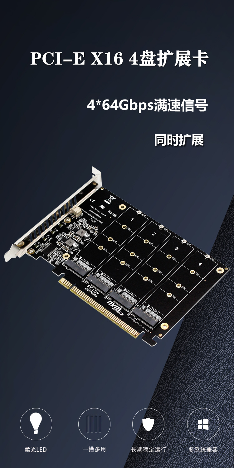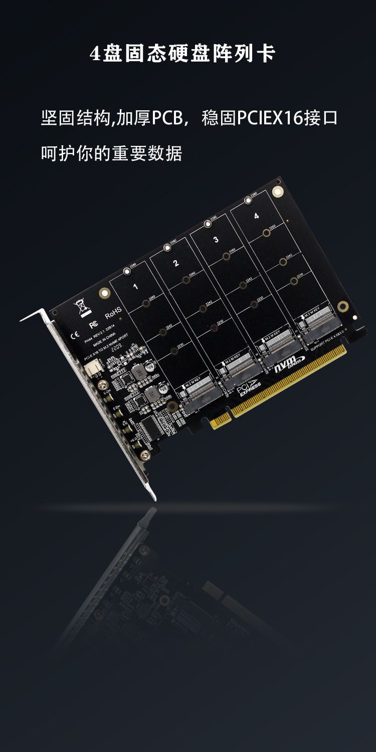 PH44 NVME 4 디스크 배열 카드 PCIE 신호 분할 배열 카드