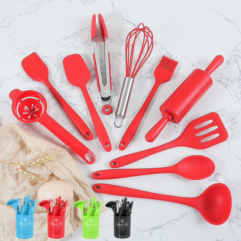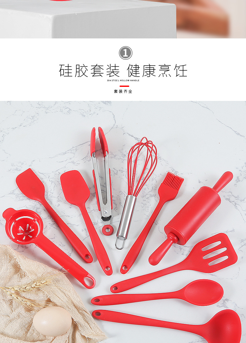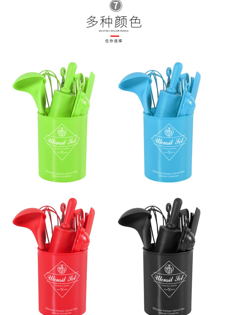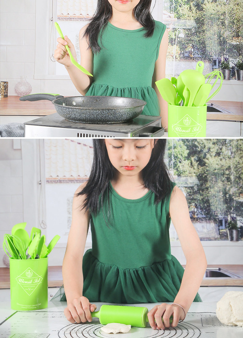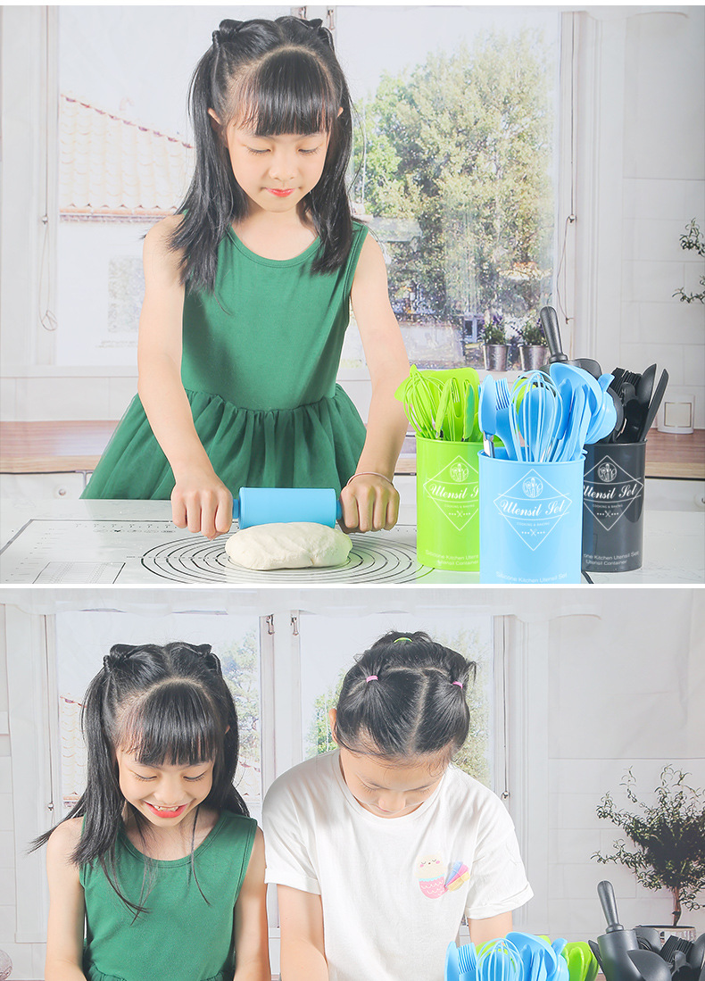 产品名称:Ins风格硅胶厨具套装 家用厨房迷你11件套烘焙工具收纳桶装儿童铲
