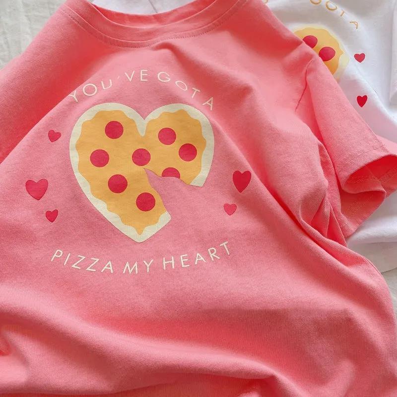 2024 새로운 여름 한국 스타일 아동 의류 소녀 케이크 사랑 순수 코튼 느슨한 캐주얼 반팔 탑 남성 티셔츠스토어 가기