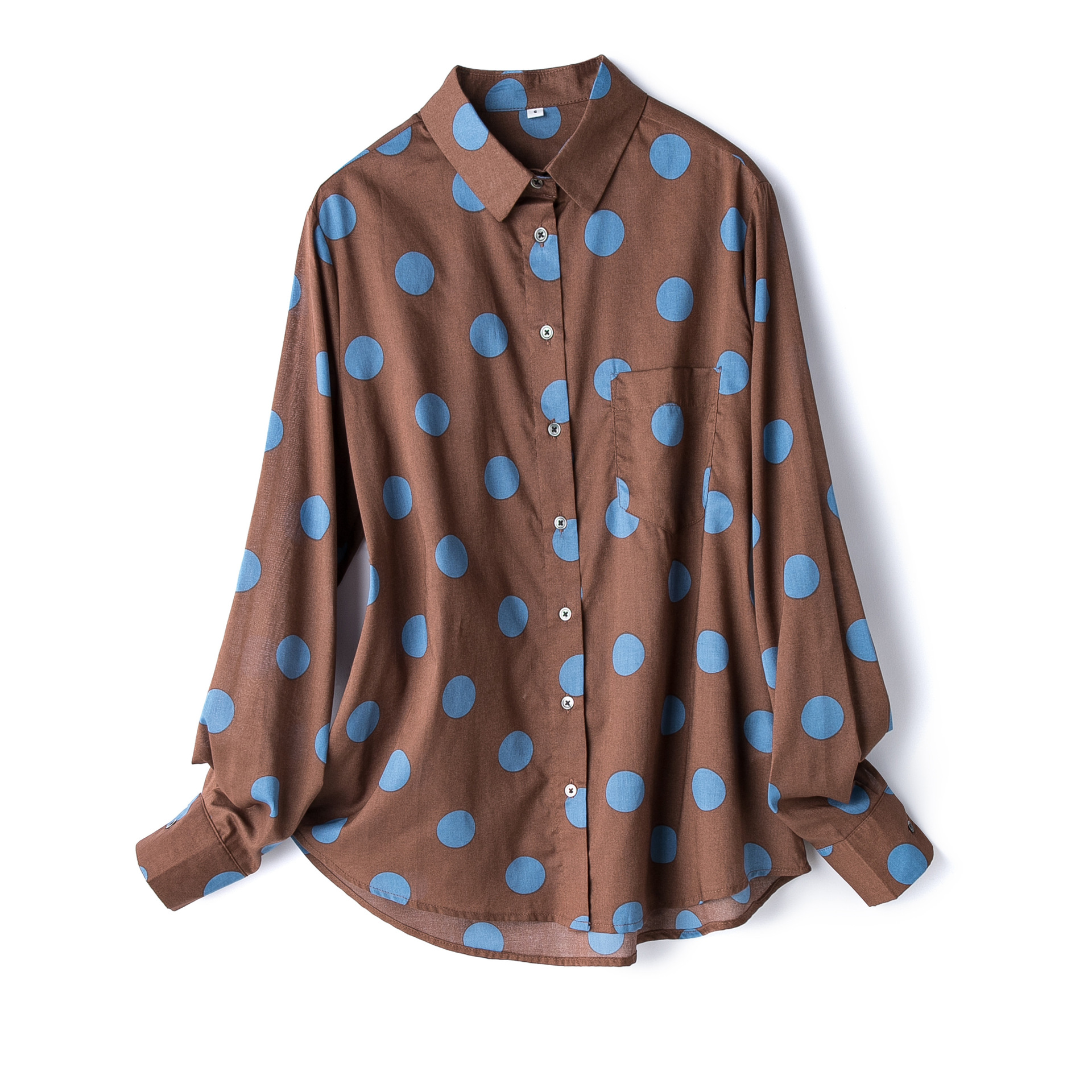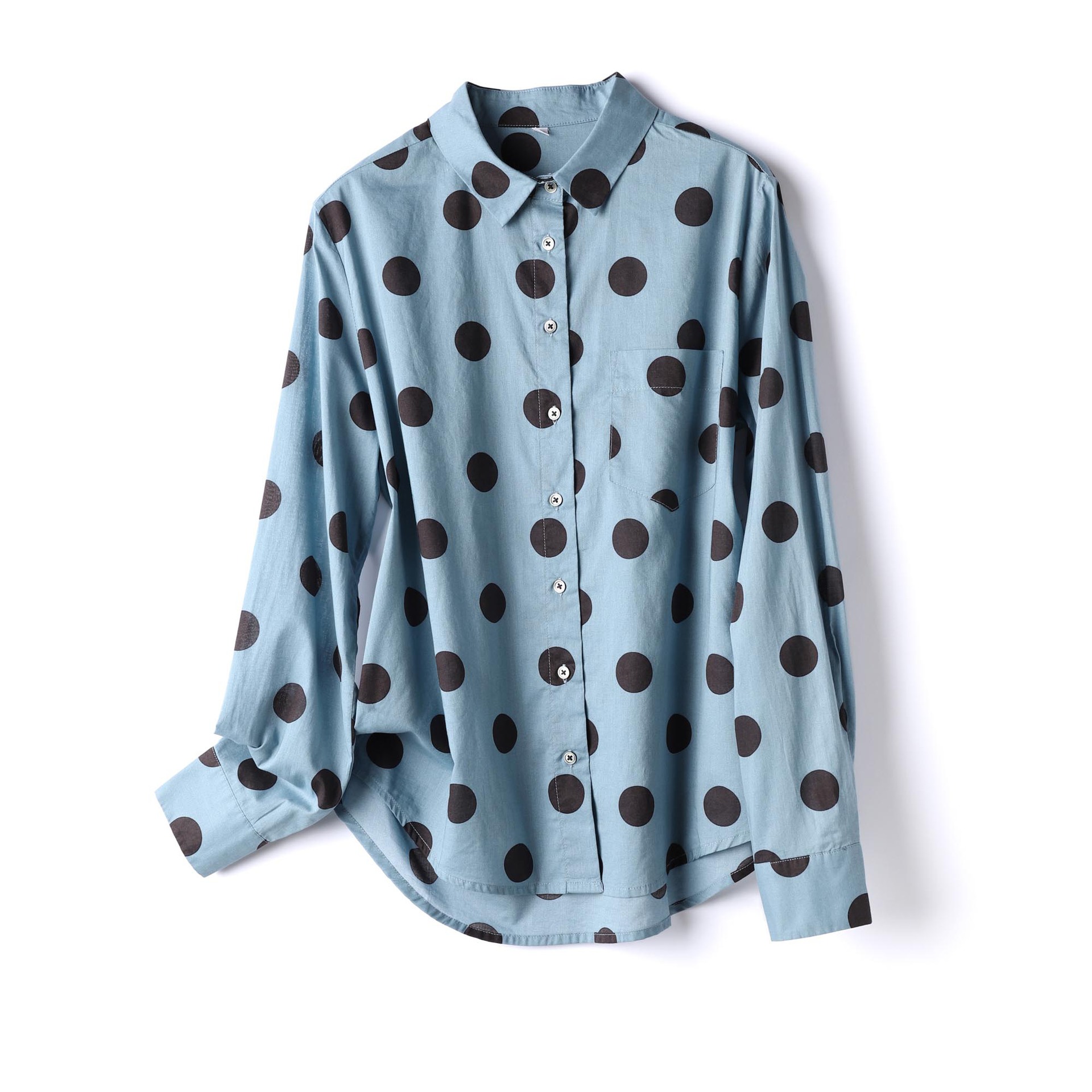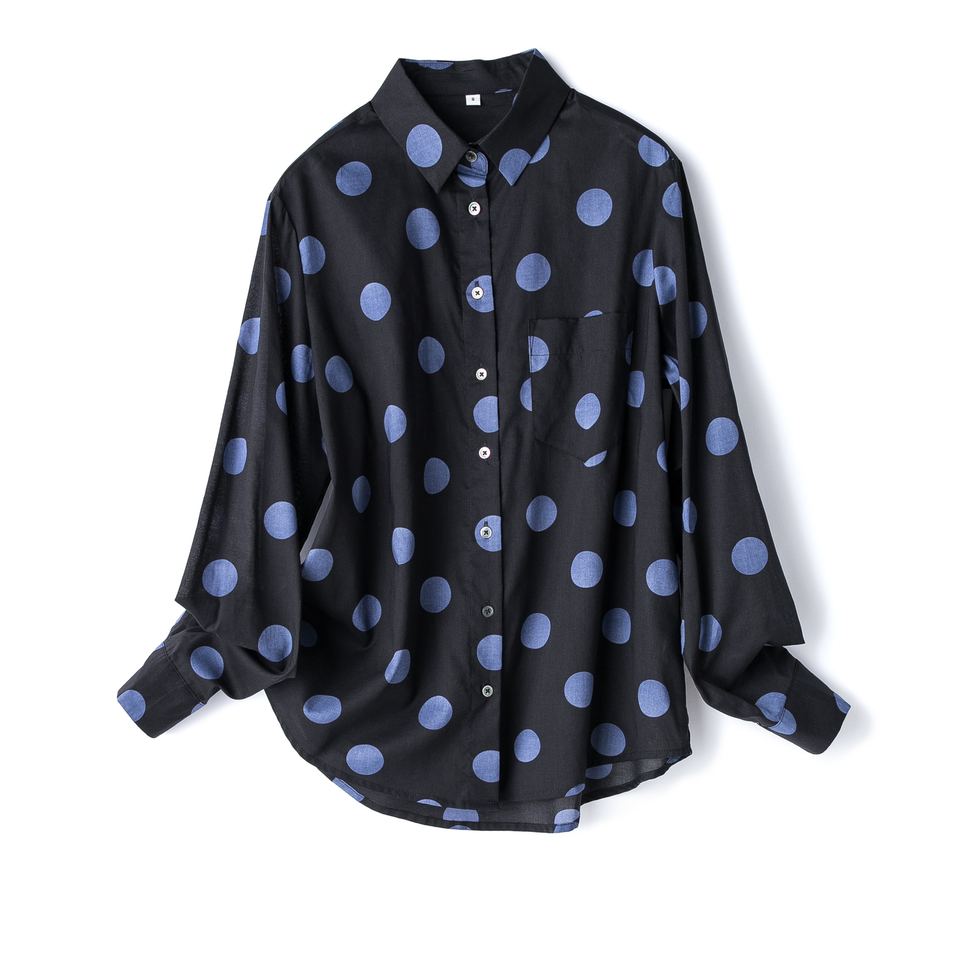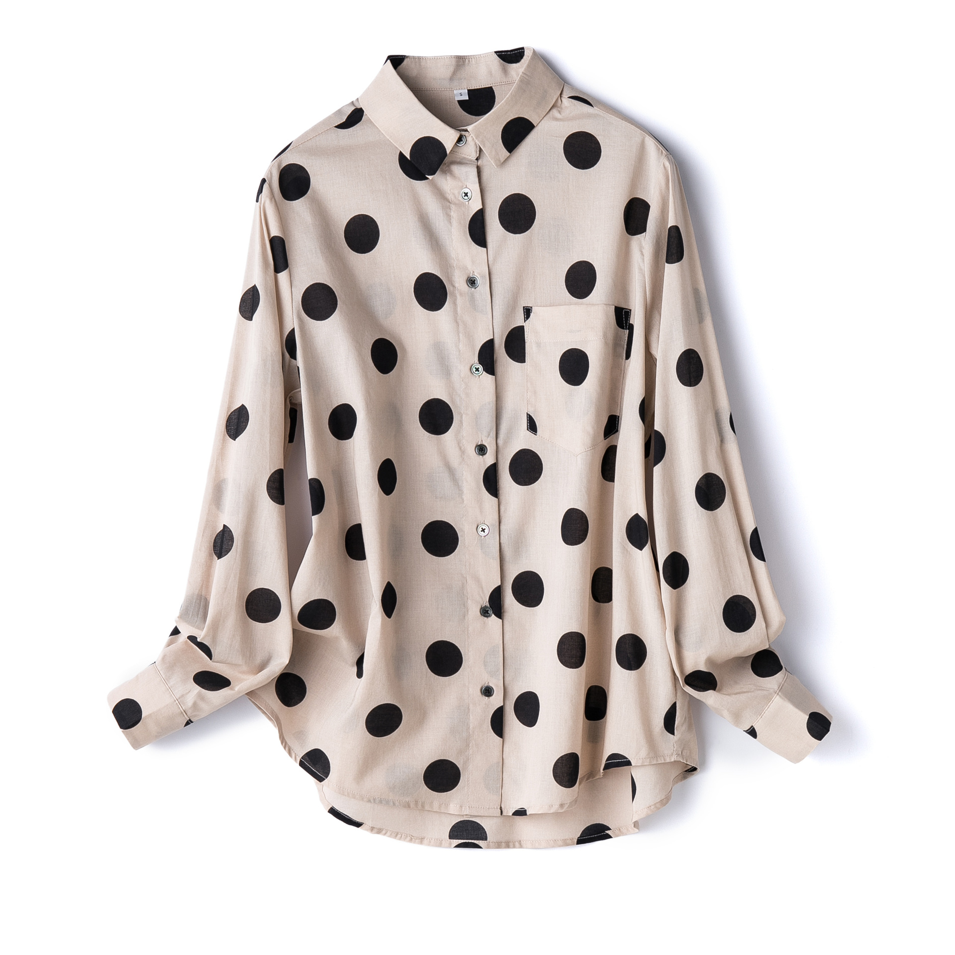 上身利落洒脱,裤子或者配饰的颜色如果和圆点颜色同色或同色系,