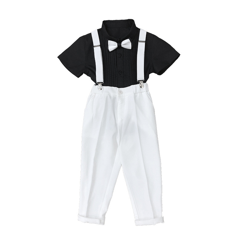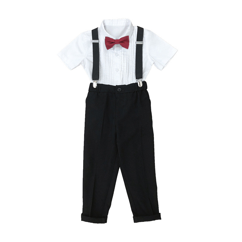 어린이 스트랩 세트 졸업 시즌 짧은 소매 셔츠 투피스 세트 소년 꽃 소녀 원피스 6 월 1 일 공연 원피스 잘 생긴