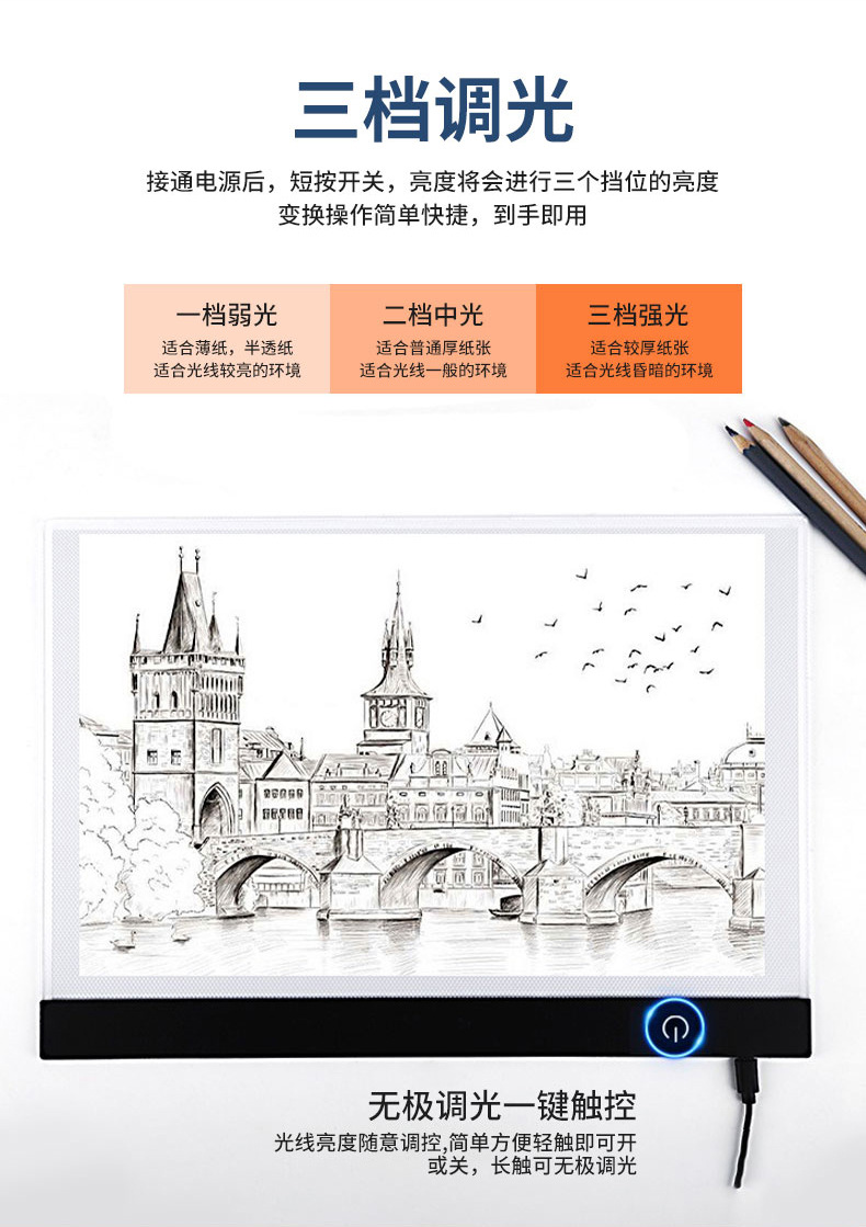 • 대형 A3 무단계 디밍 + 1.5m 데이터 케이블(공기 기둥 상자에 포장) 34.5*47CM