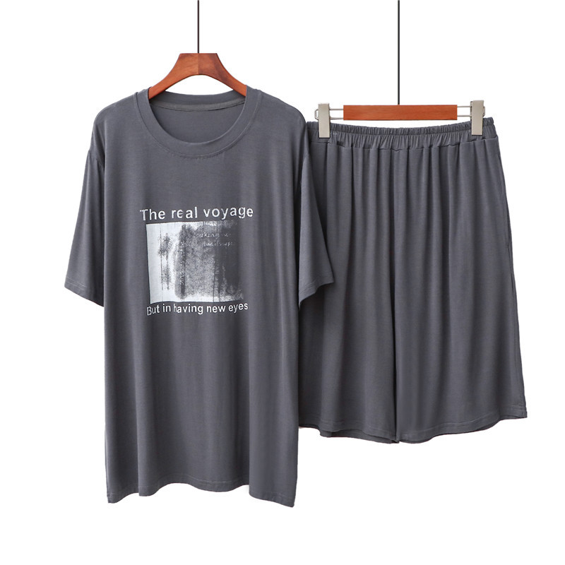 시원한 남성용 잠옷 모달 얇은 반팔 반바지 홈웨어 외출 가능 루즈핏 통기성 시원한 세트