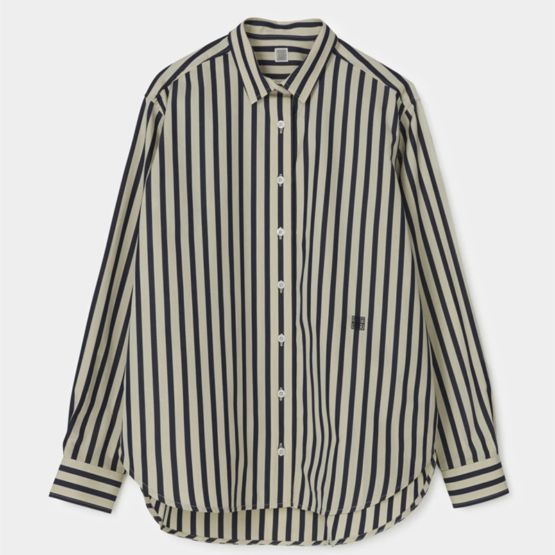 여성용 셔츠 유럽 및 미국 트렌드 브랜드 단색 스트라이프 긴팔 패션 스트라이프 탑 가을 겨울 루즈 핏 지적인 셔츠