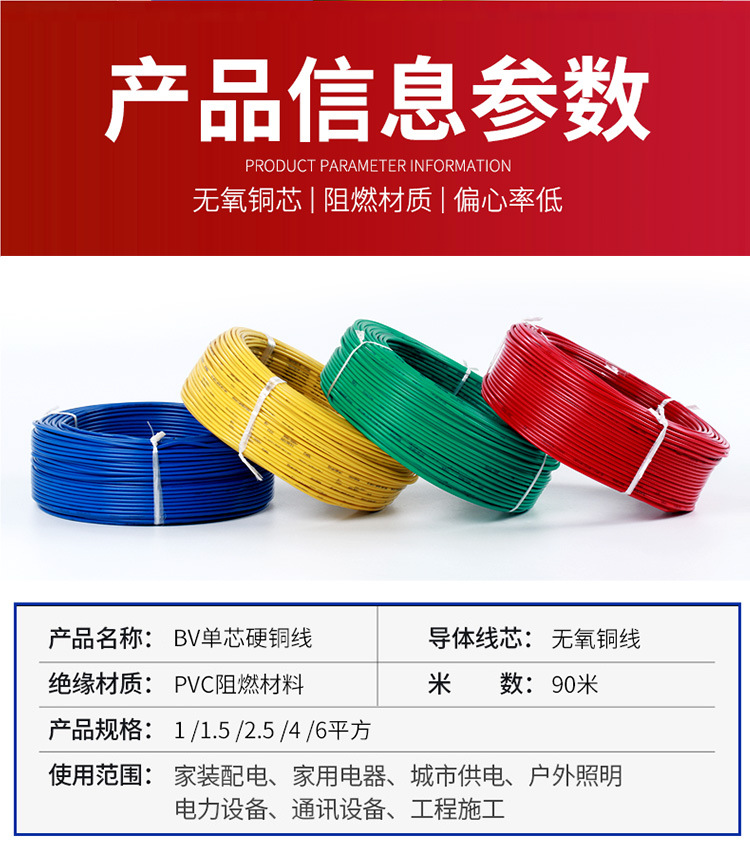 공장 케이블 BV4 사각형 와이어 국가 표준 구리 코어 난연 PVC 전원 코드 홈 장식 조명 절연 전자 와이어스토어 가기