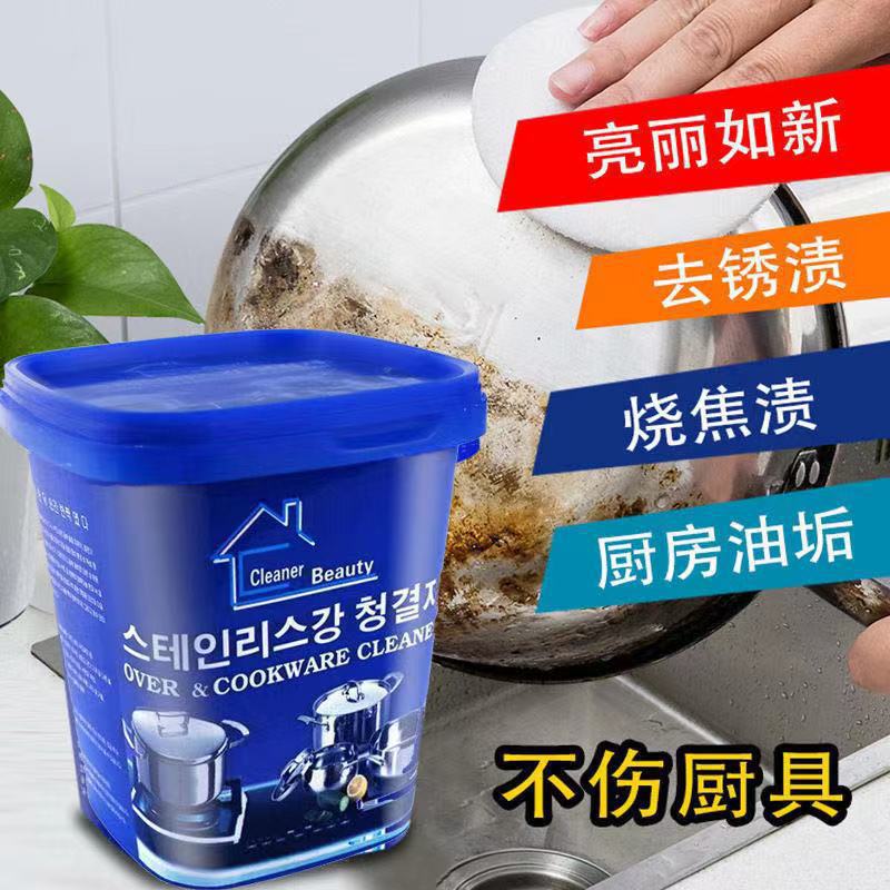스테인레스 스틸 클리닝 페이스트 강력한 오염 제거 클리너 다기능 주방 녹 제거 냄비 바닥 검은 스케일 화상 자국 세척 냄비 유물스토어 가기