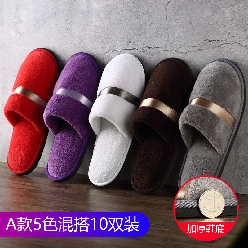[10 쌍] 일회용 슬리퍼 대접 슬리퍼 홈 커플 미끄럼 방지 두꺼운 실내 남녀 호텔 봄과 여름스토어 가기
