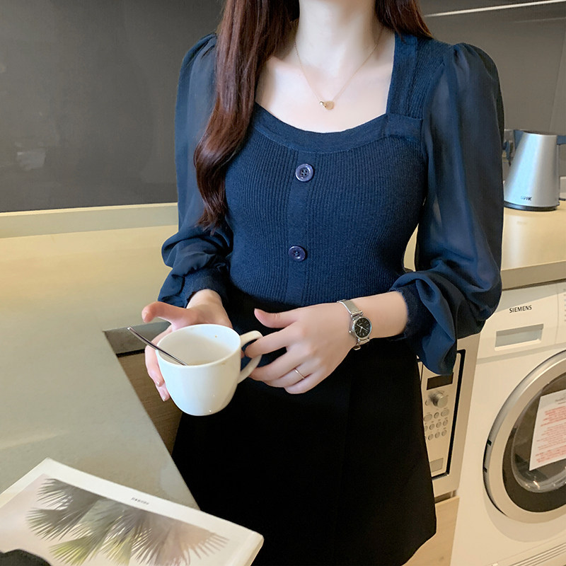 2026 여름 가을 신상 무지 베이직 여성 이너웨어 슬림핏 스퀘어넥 긴팔 숏탑 부드러운 니트