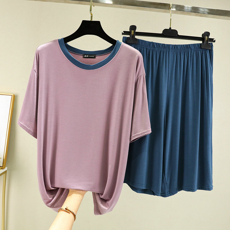모달 면 반 소매 티셔츠 남자의 봄과 여름 느슨한 대조 잠옷은 외부 홈 투 피스 세트 얇은 착용 할 수 있습니다