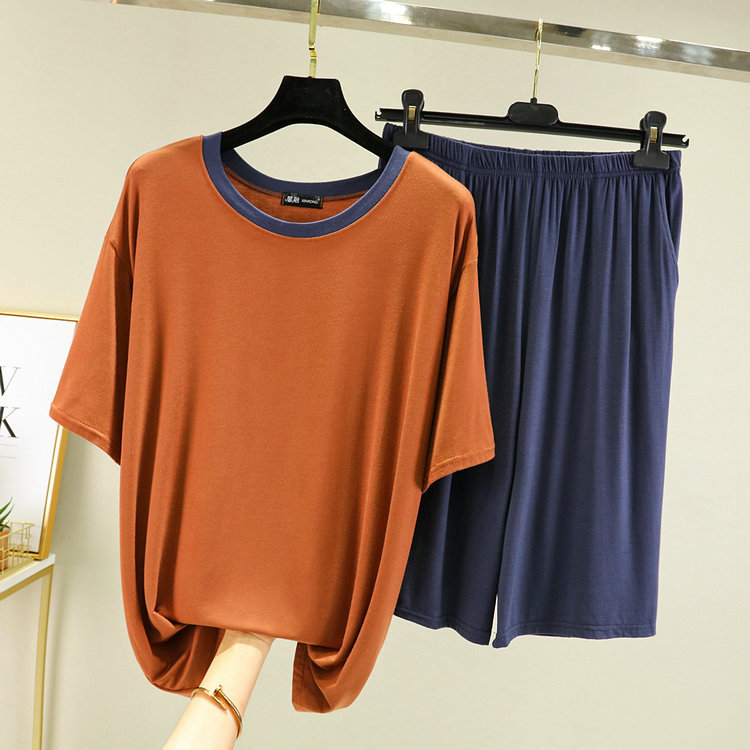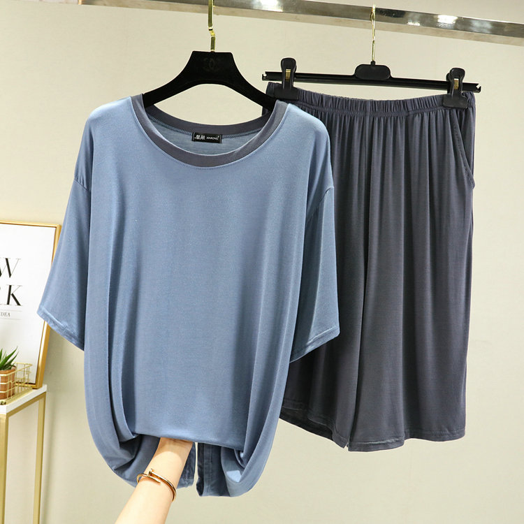모달 면 반 소매 티셔츠 남자의 봄과 여름 느슨한 대조 잠옷은 외부 홈 투 피스 세트 얇은 착용 할 수 있습니다스토어 가기
