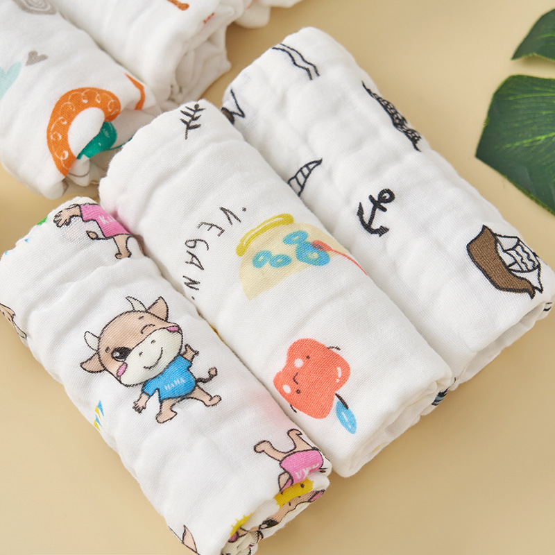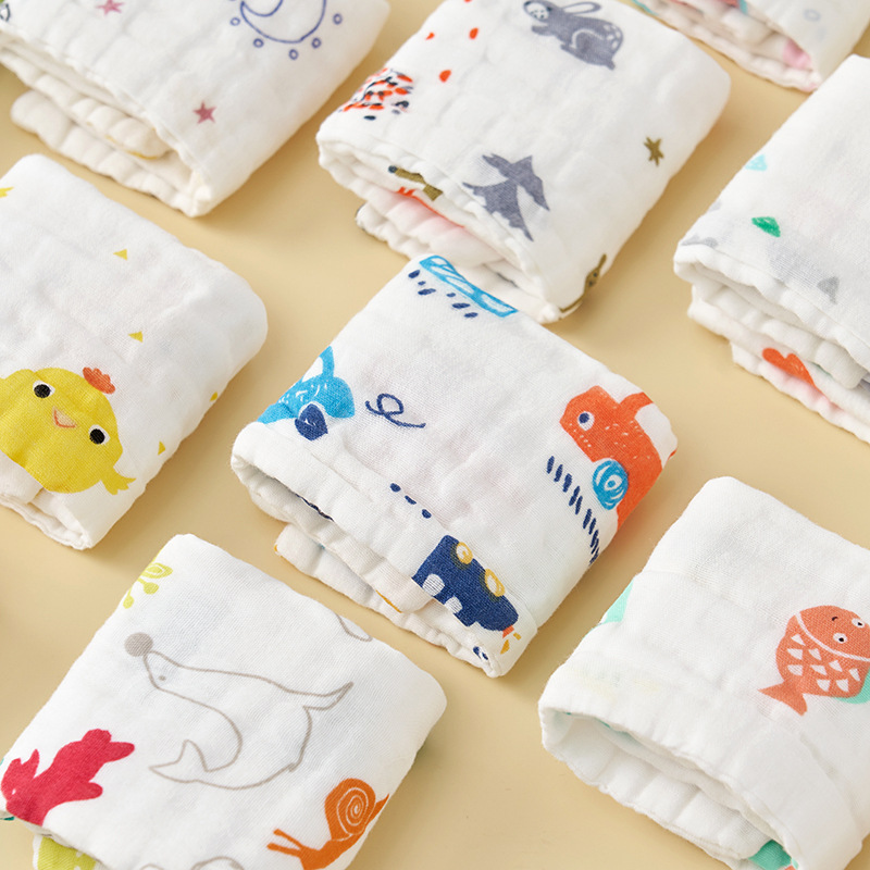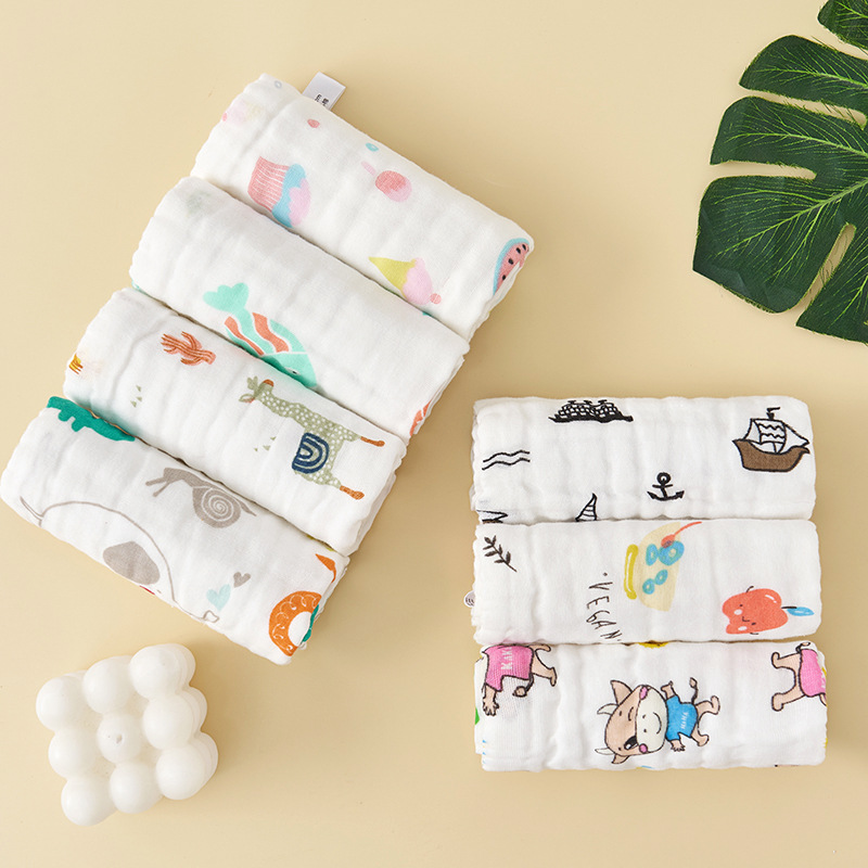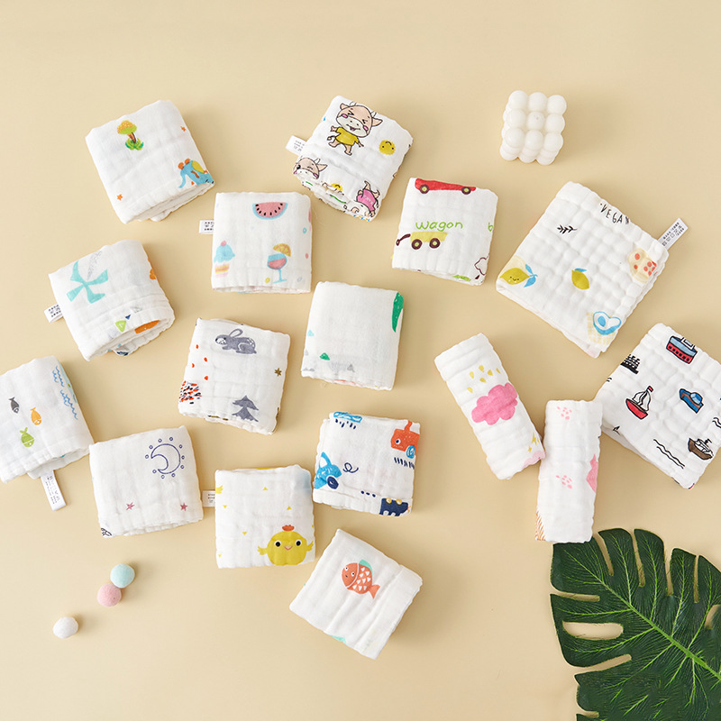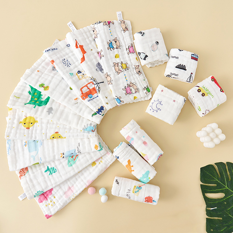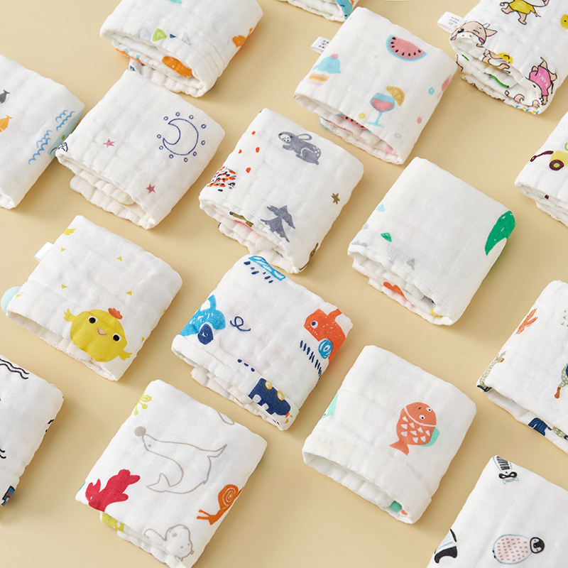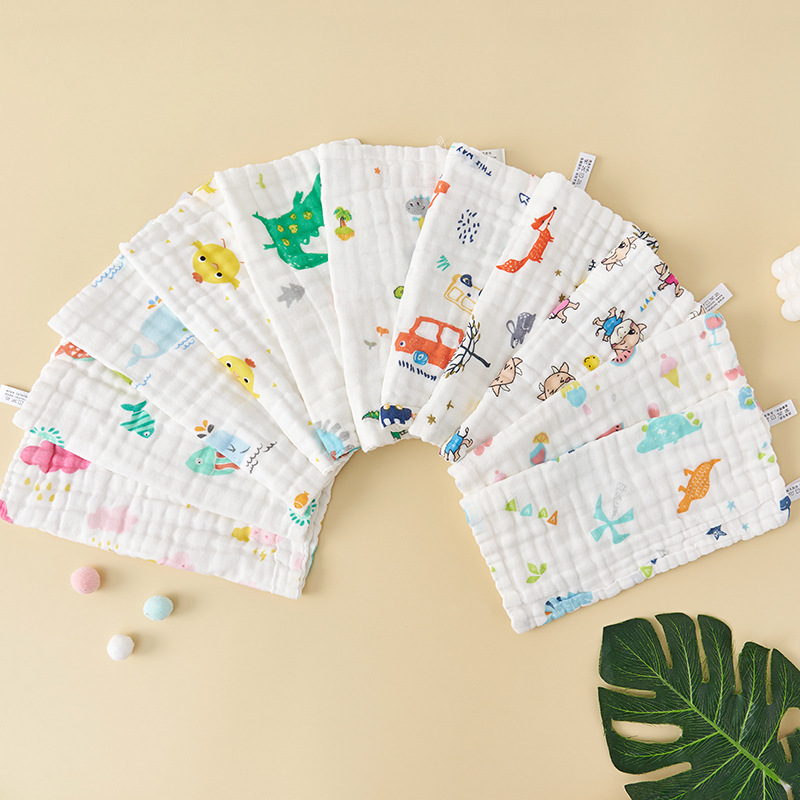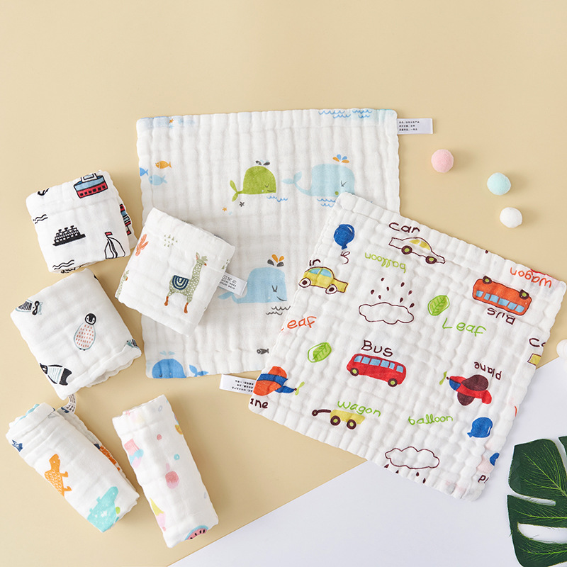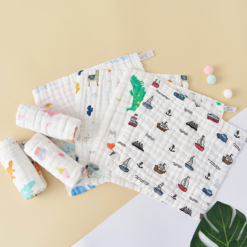 어린이 아기 시어서커 스퀘어 스카프 어린이 인쇄 얼굴 스카프 신생아 어린이 만화 거즈 손 스카프
