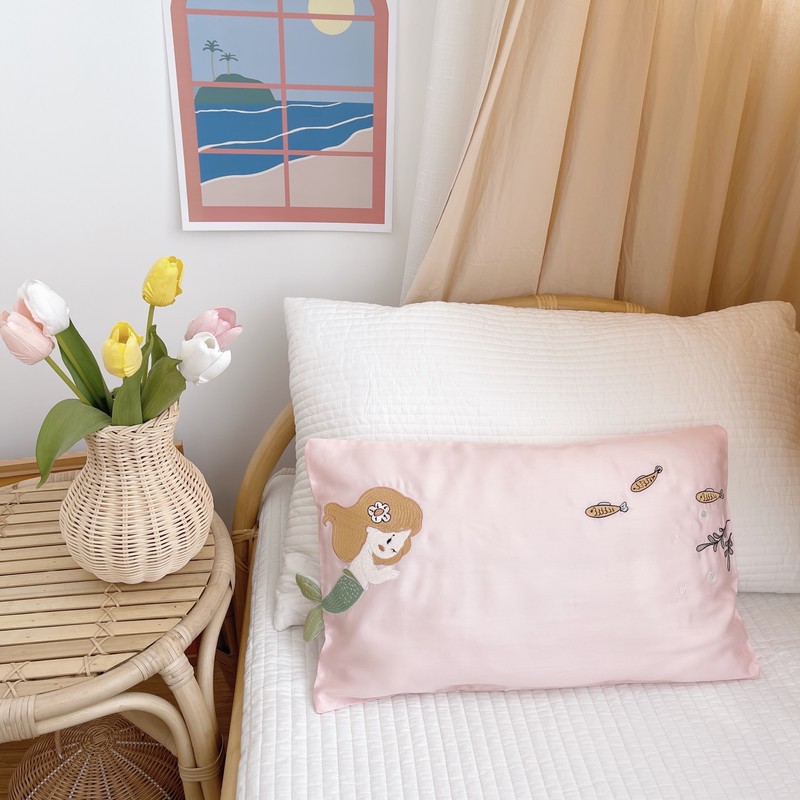 작은 신선한 귀여운 만화 인어 악어 모양 아기 베갯잇 텐셀 단일 유치원 베갯잇스토어 가기