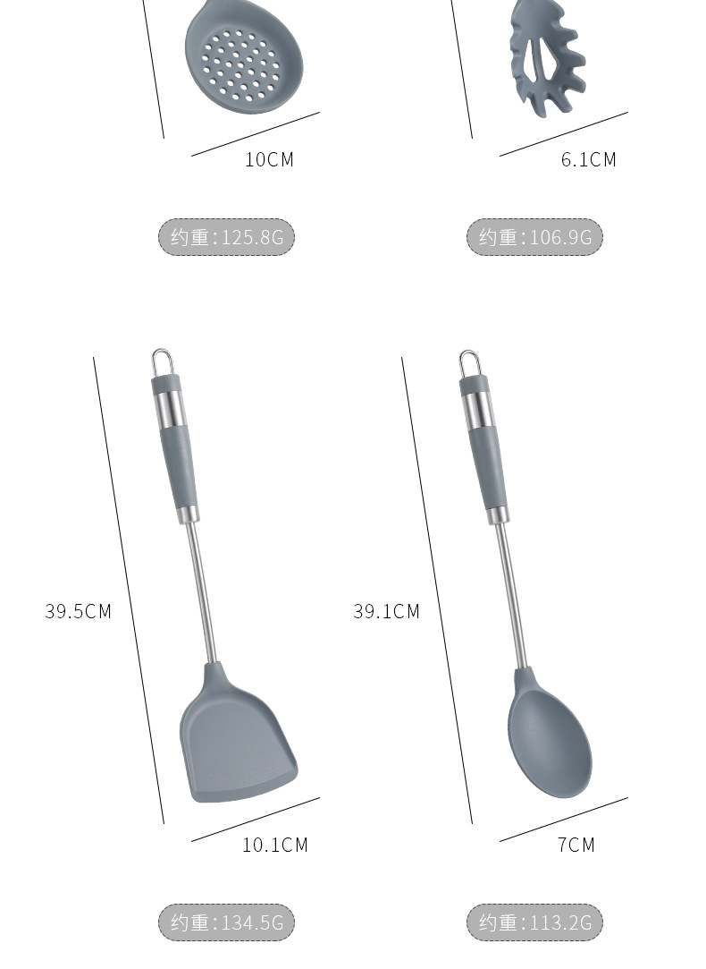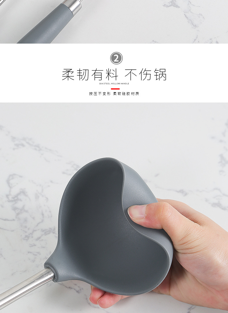 产品名称:现货430不锈钢圈硅胶厨具套装 硅胶锅铲粥勺炒铲意粉勺漏烹饪勺铲