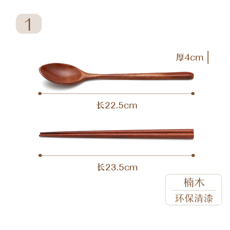 일본식 나무 식기 2 종 세트 난무 옻칠 나무 숟가락 나무 젓가락 어린이 학생 1 인 여행 휴대용 식기스토어 가기