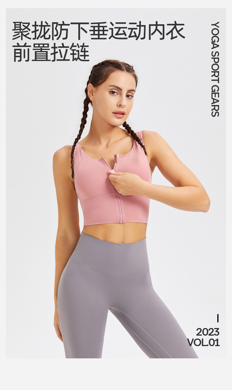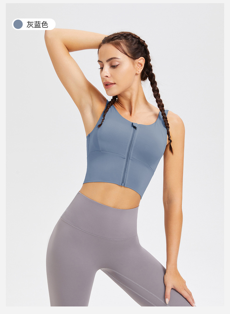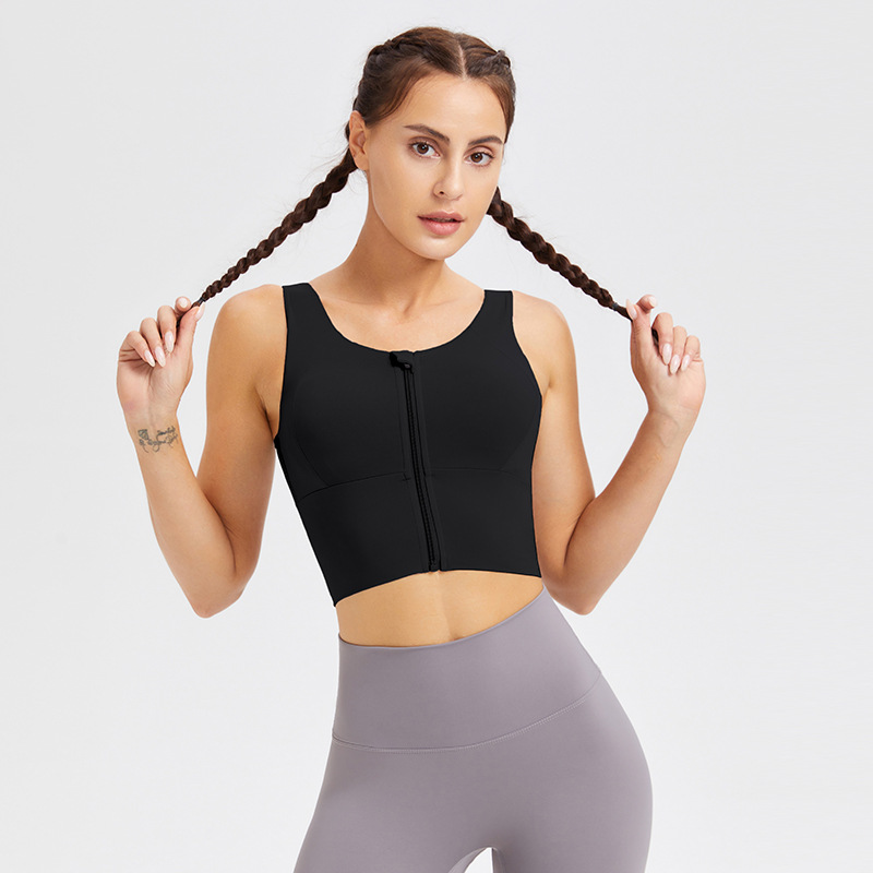 스포츠 속옷 여성의 여름 충격 방지 러닝 프론트 지퍼 브런 푸시 업 브라, 컵 아우터웨어 요가 조끼