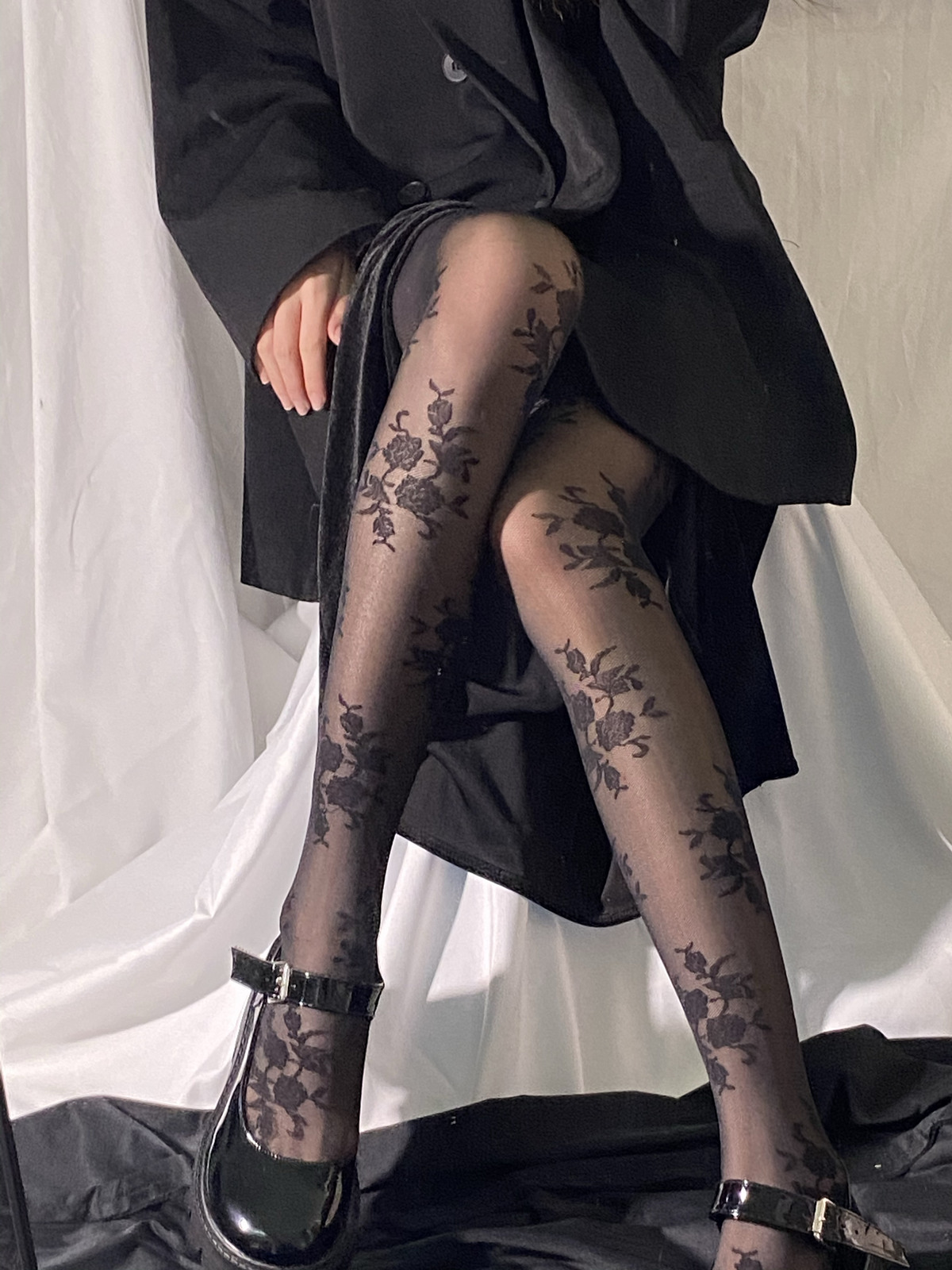 빈티지 크림 화이트 로즈 로즈 자카드 실크 스타킹 레이스 얇은 다크 블랙 실크 안티 스트립 실크 팬티 스타킹스토어 가기