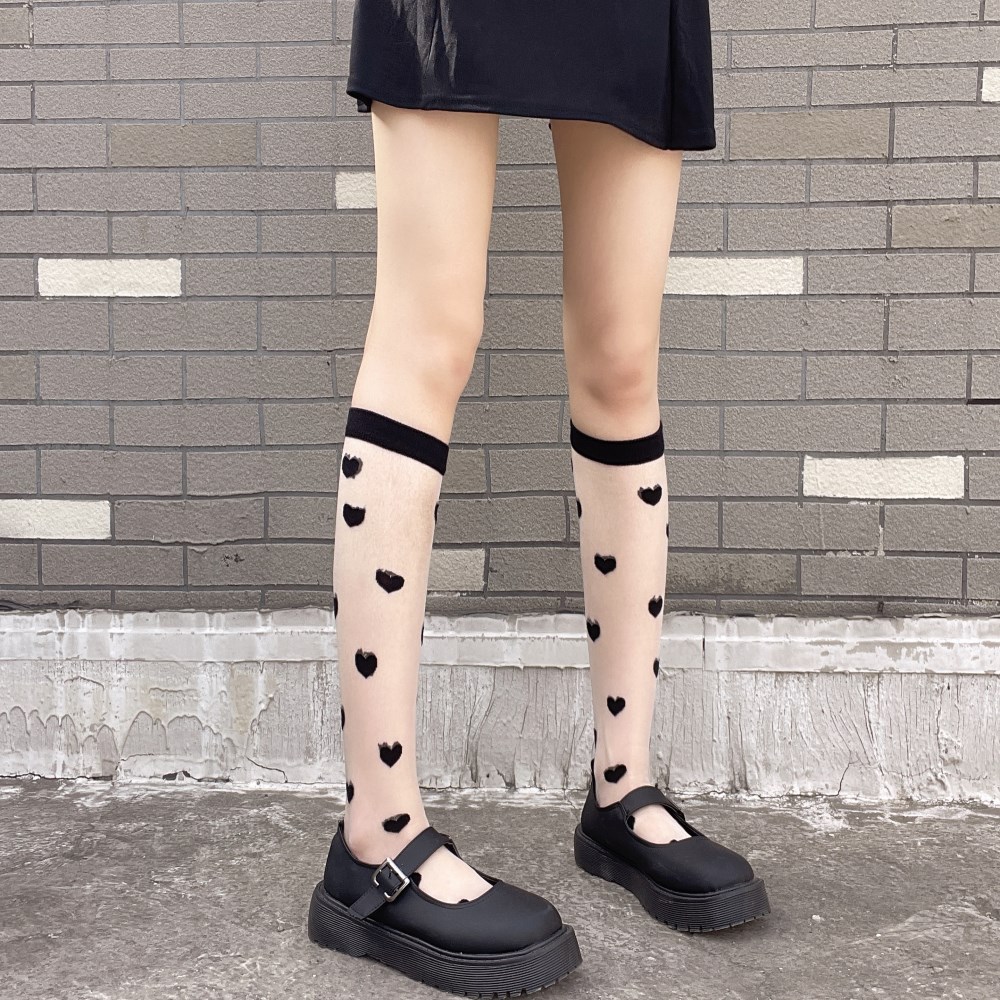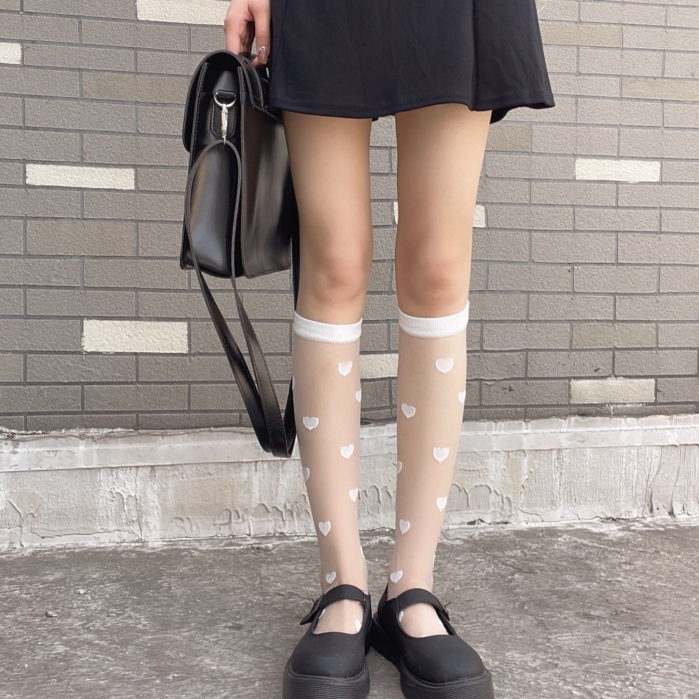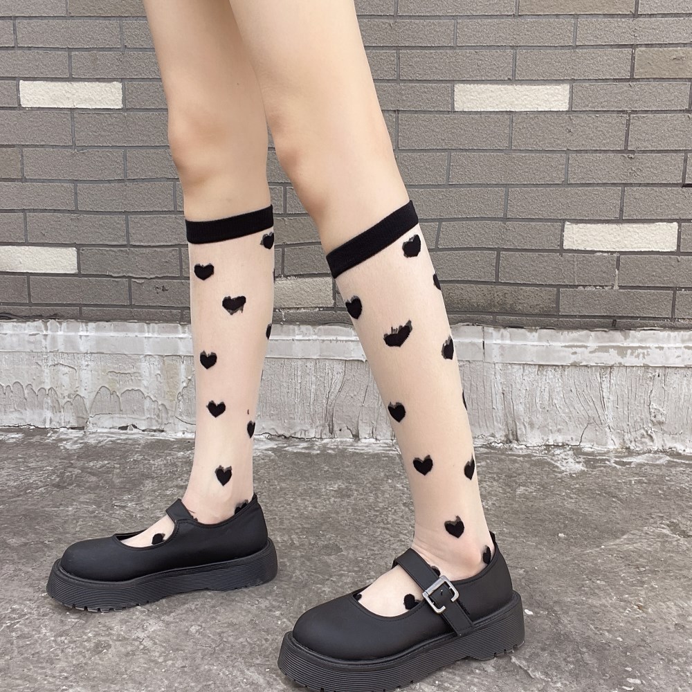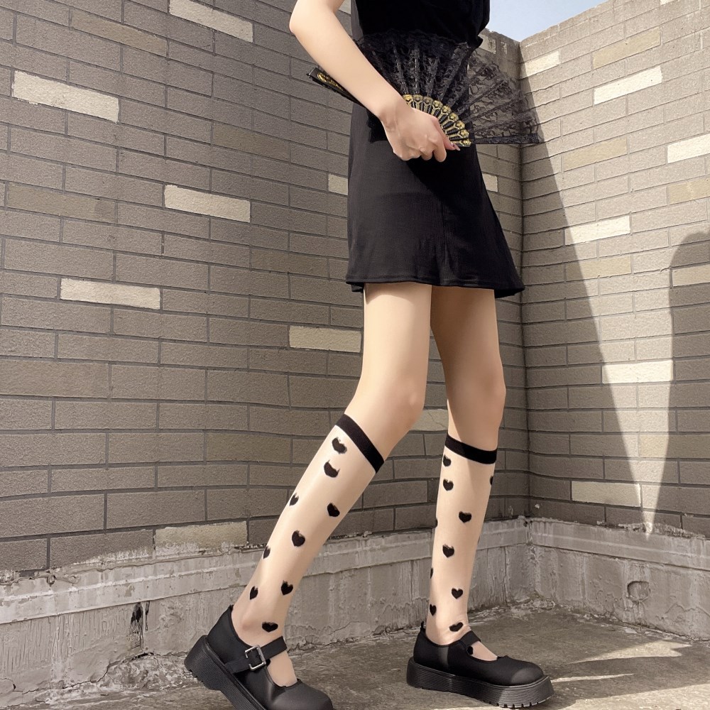 봄과 여름 러브 카드 실크 글라스 실크 자카드 송아지 양말 투명 크리스탈 튜브 양말 학생 소녀 귀여운 소녀스토어 가기