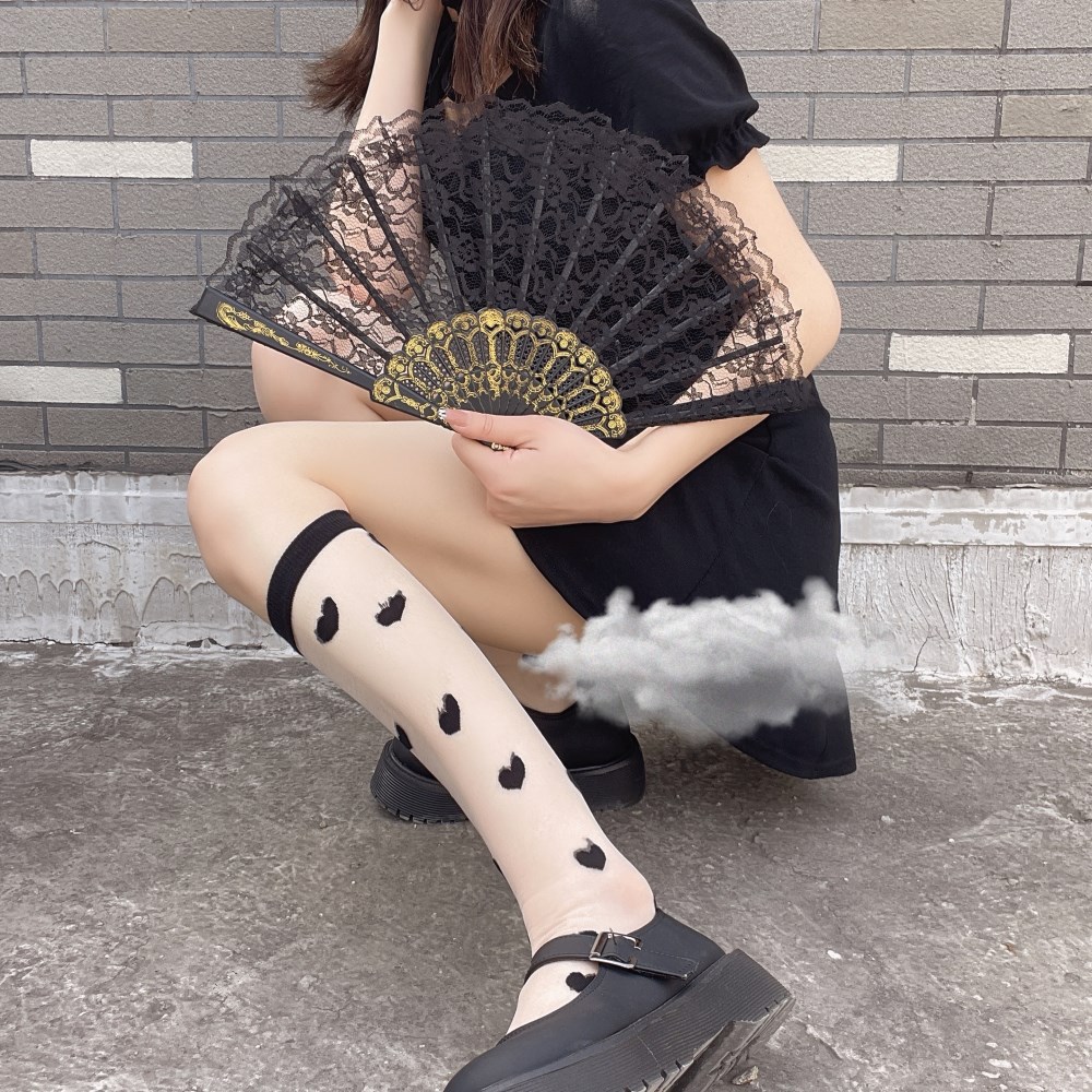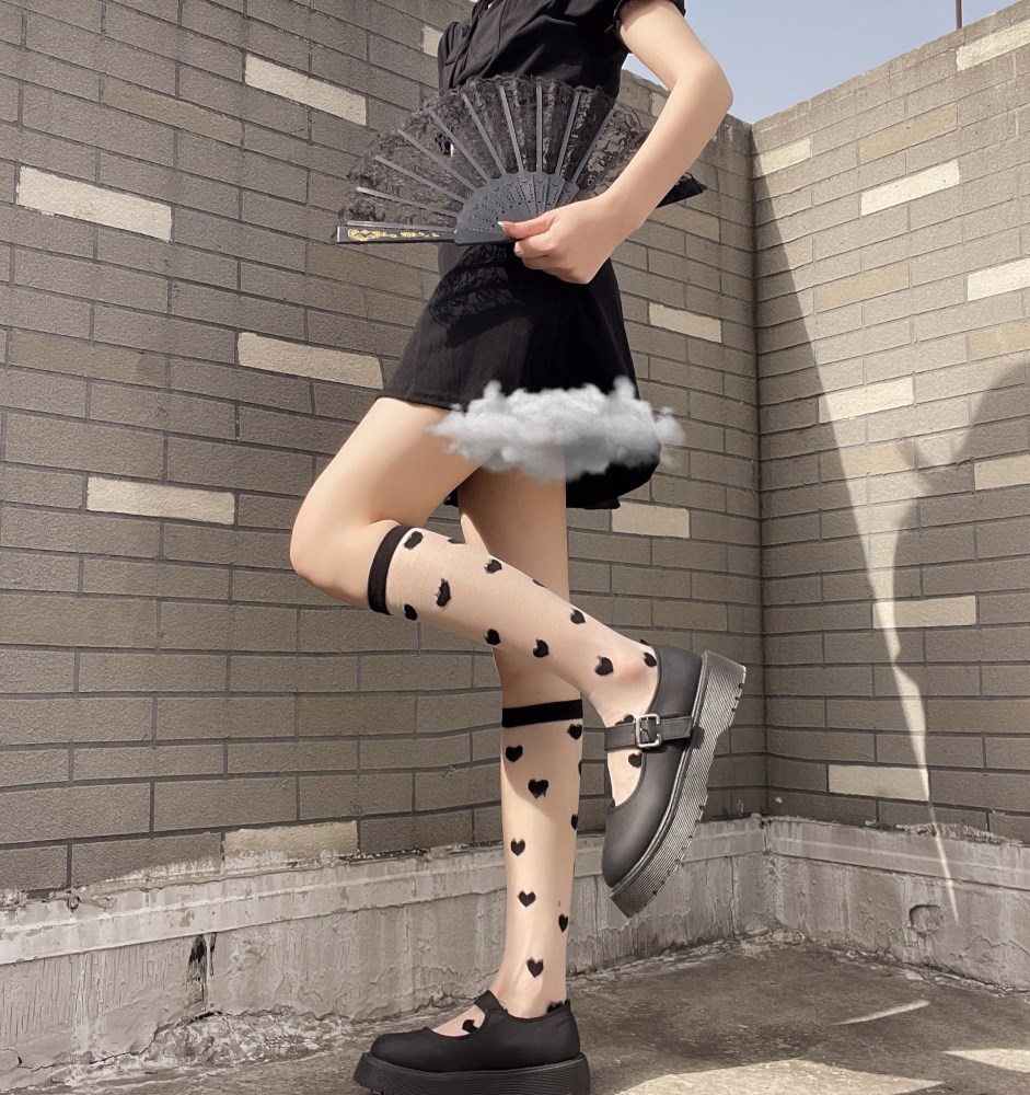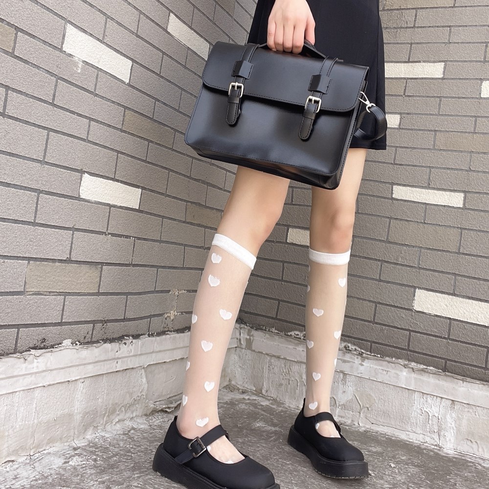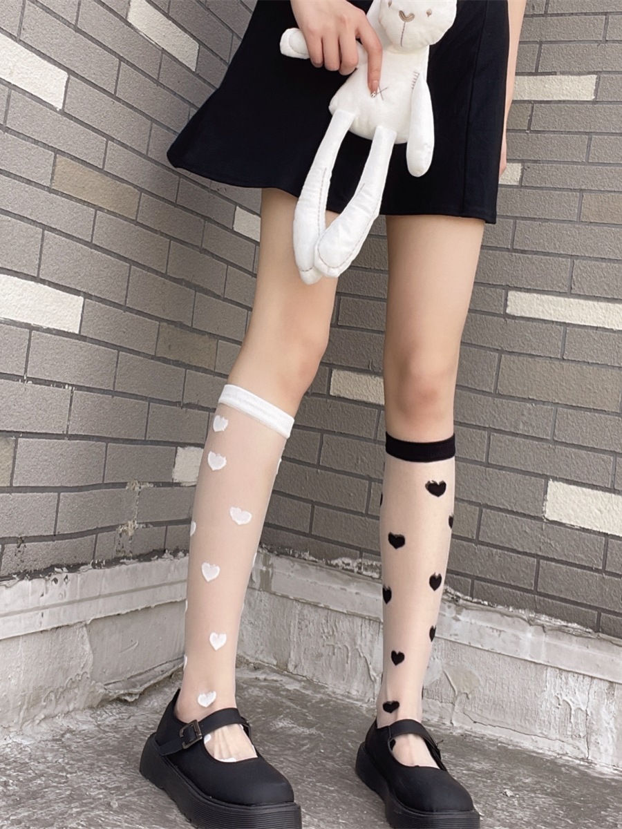 봄과 여름 러브 카드 실크 글라스 실크 자카드 송아지 양말 투명 크리스탈 튜브 양말 학생 소녀 귀여운 소녀스토어 가기
