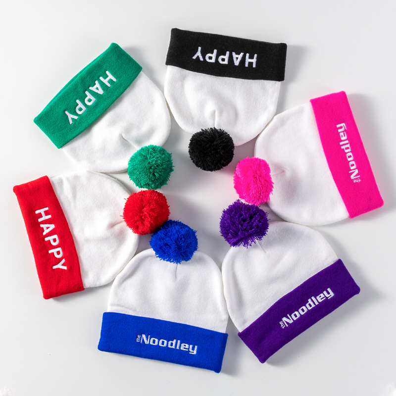 맞춤형 가을과 겨울 턴 업 일반 니트 콘트라스트 컬러 울 볼 모자 남녀 올 매치 헤드웨어 패션 자수 모자