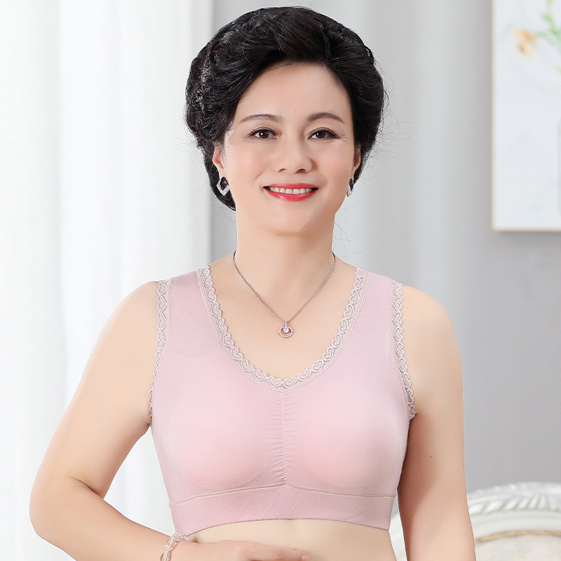 중년 및 노인 모달 속옷 여성용 무테 조끼 형 어머니 브래지어 고탄성 스포츠 처짐 방지 플러스 사이즈 브래지어스토어 가기