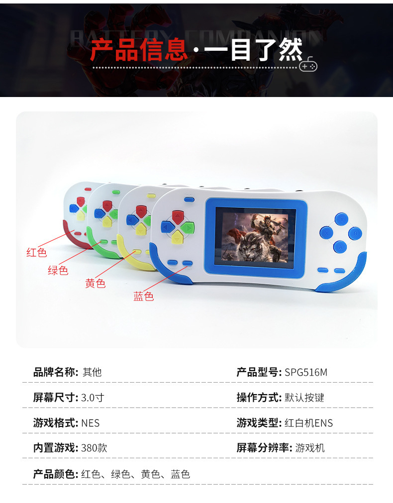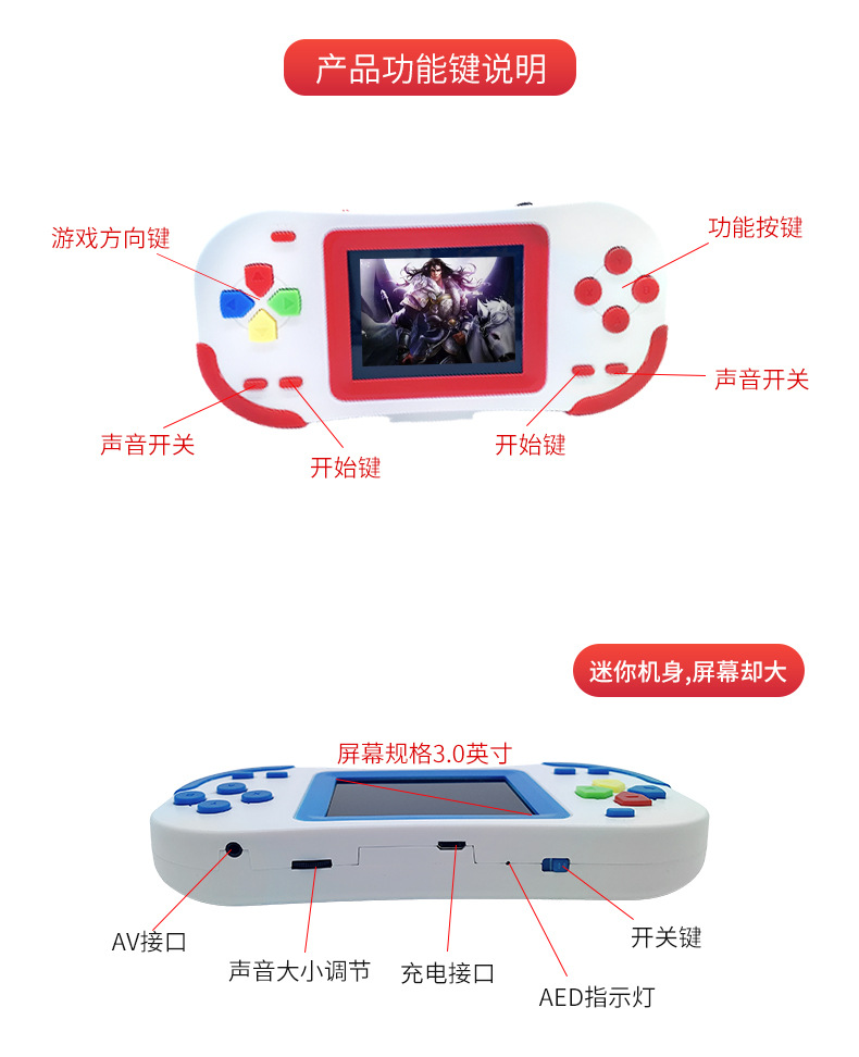 3.0 인치 어린이 컬러 스크린 핸드 헬드 게임기의 국경 간 직접 공급 복고풍 향수 380 클래식 게임 포함