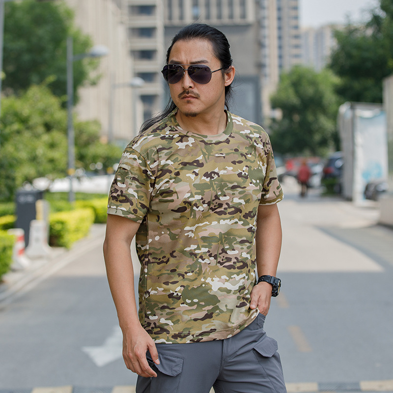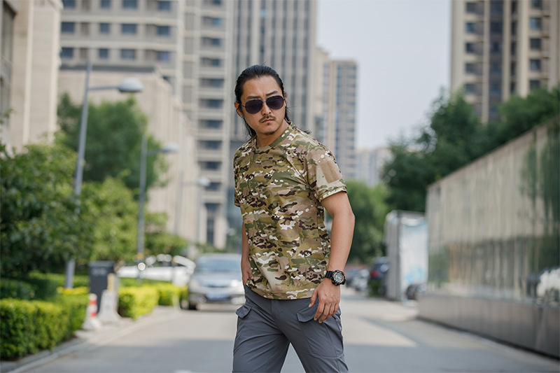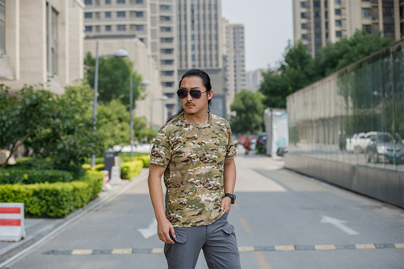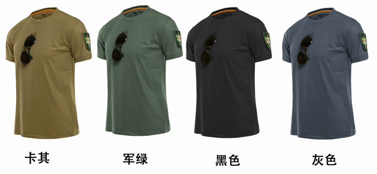 체력 단련복 세트 새로운 체력 단련복 반팔 전술 남자의 여름 훈련 티셔츠 라운드 넥 속건 의류스토어 가기
