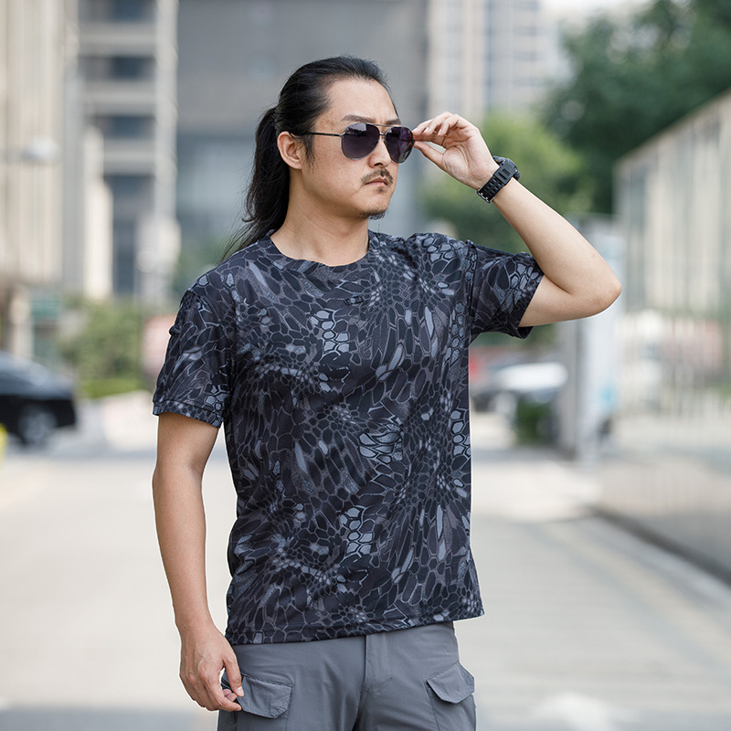 체력 단련복 세트 새로운 체력 단련복 반팔 전술 남자의 여름 훈련 티셔츠 라운드 넥 속건 의류