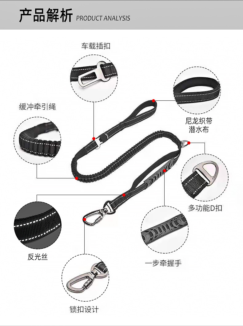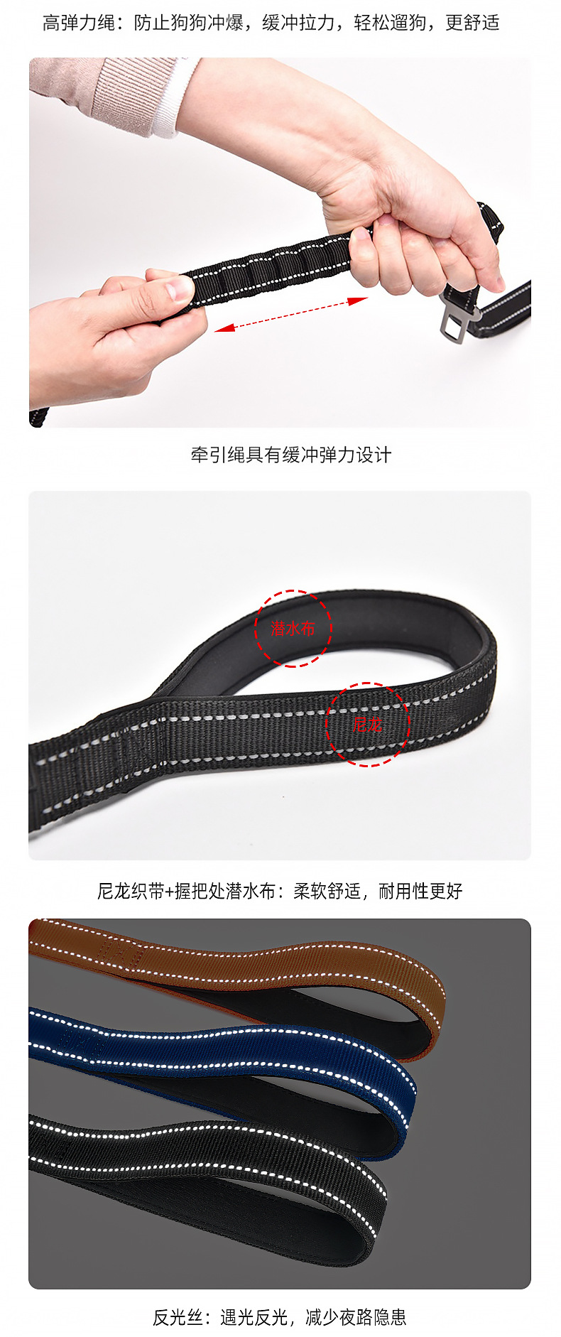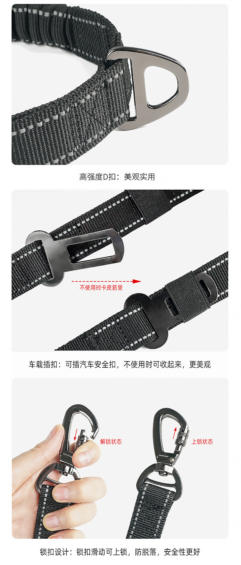 아마존 방폭 자동차 안전 개 로프 다기능 자동차 안전 벨트 양손 애완 동물 개폐식 견인 로프