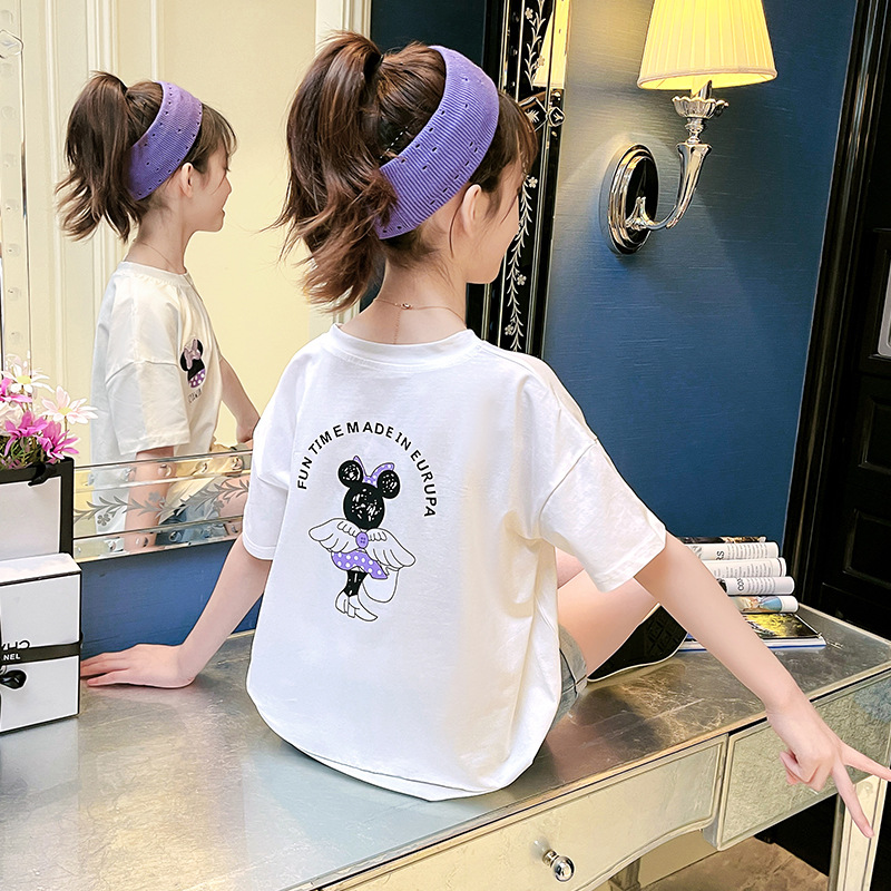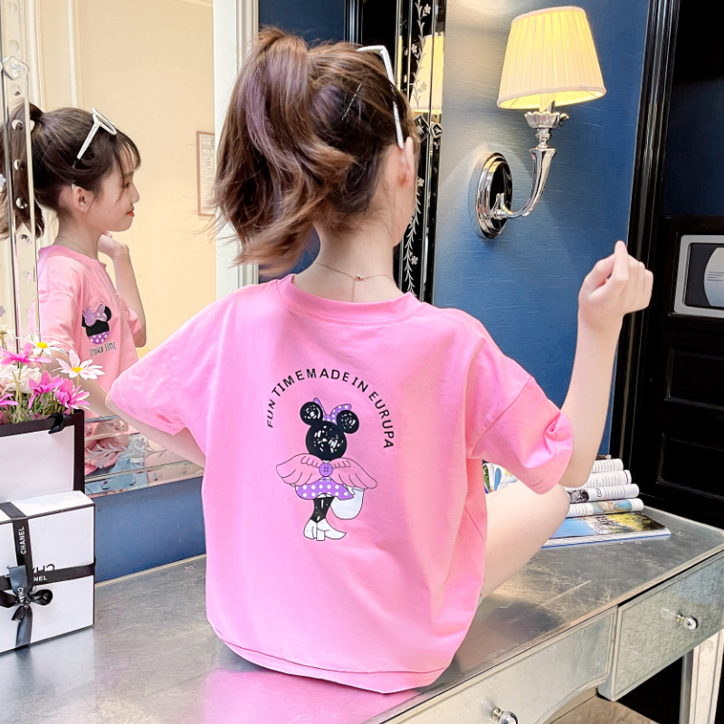 2021 여름 아동복 도매 소녀 큰 어린이 새로운 어린이 편안한 느슨한 반팔 티셔츠 탑