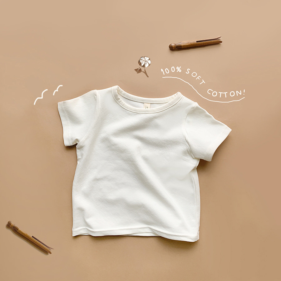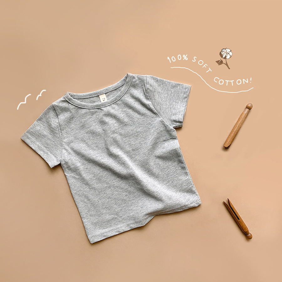 2022 년 여름 새로운 얇은 귀여운 어린이 단색 라운드 넥 단색 반소매 일본과 한국 아동복스토어 가기