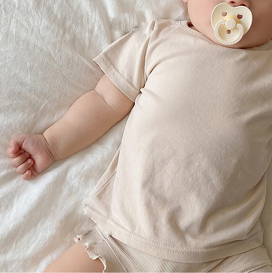 2022 년 여름 새로운 얇은 귀여운 어린이 단색 라운드 넥 단색 반소매 일본과 한국 아동복