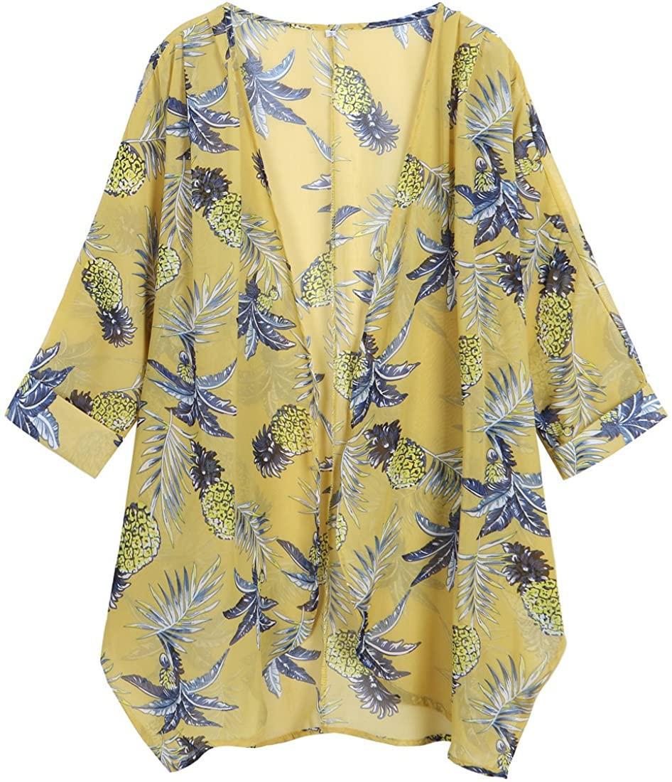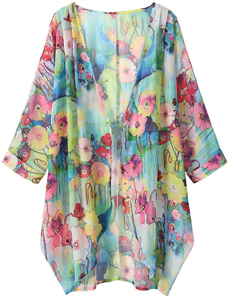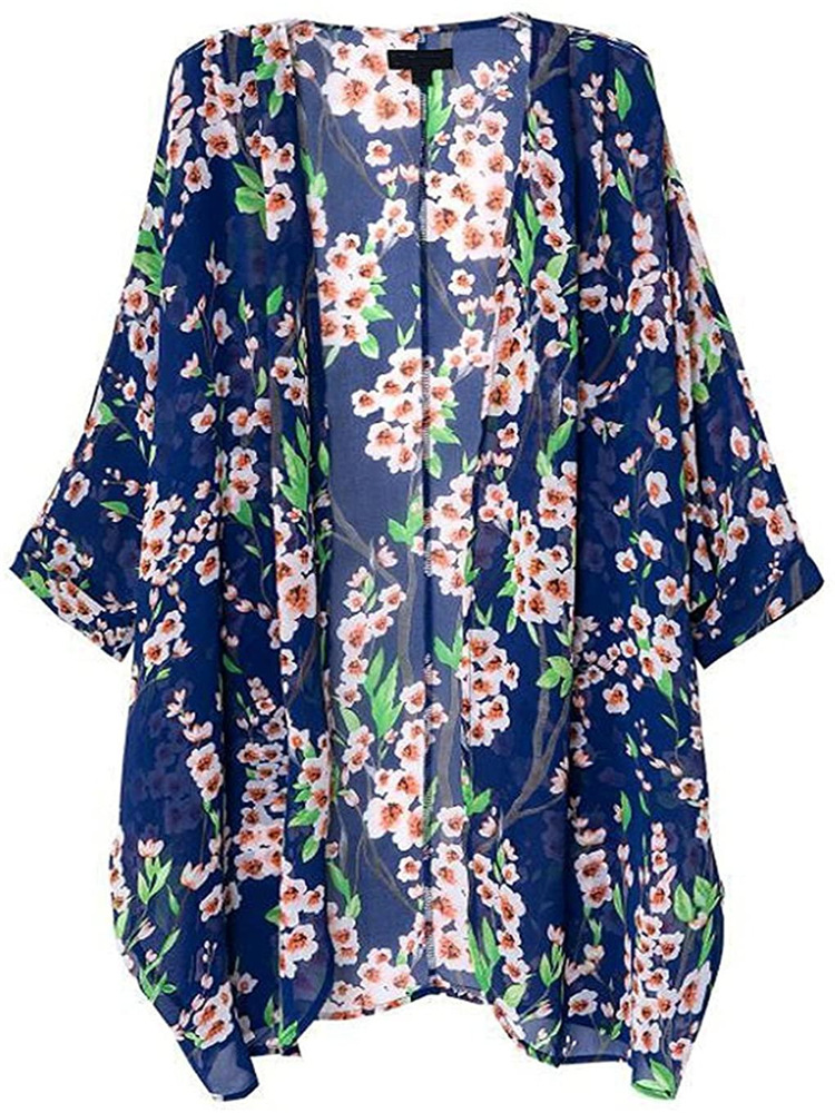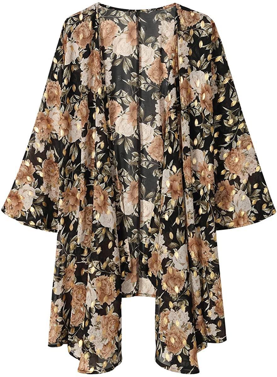 2024년 유럽 및 미국 여성 의류 아마존 여성용 꽃무늬 쉬폰 루즈핏 기모노 가디건 출퇴근용 다용도스토어 가기