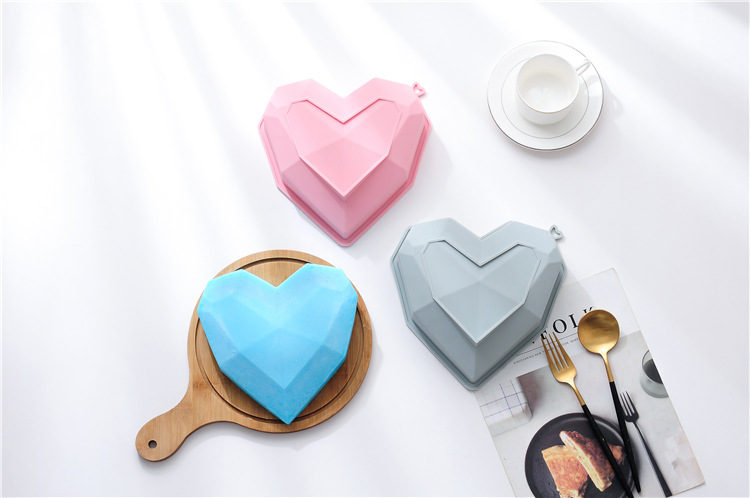 재고 3D 입체 사랑 모양의 다이아몬드 실리콘 베이킹 트레이 케이크 몰드 무스 프랑스 디저트 베이킹 몰드