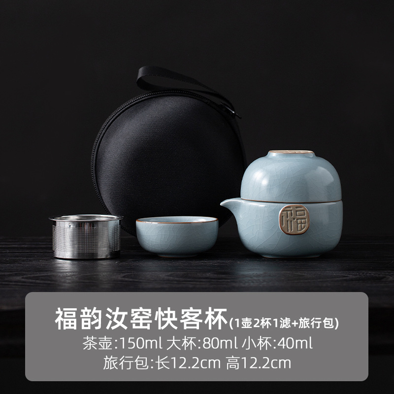 Ru Kiln 익스프레스 컵 1 포트 1 컵 야외 휴대용 찻주전자 찻잔 휴대용 여행 차 세트스토어 가기