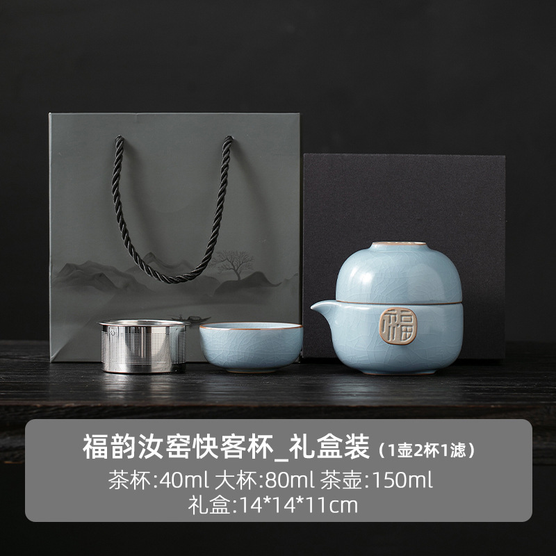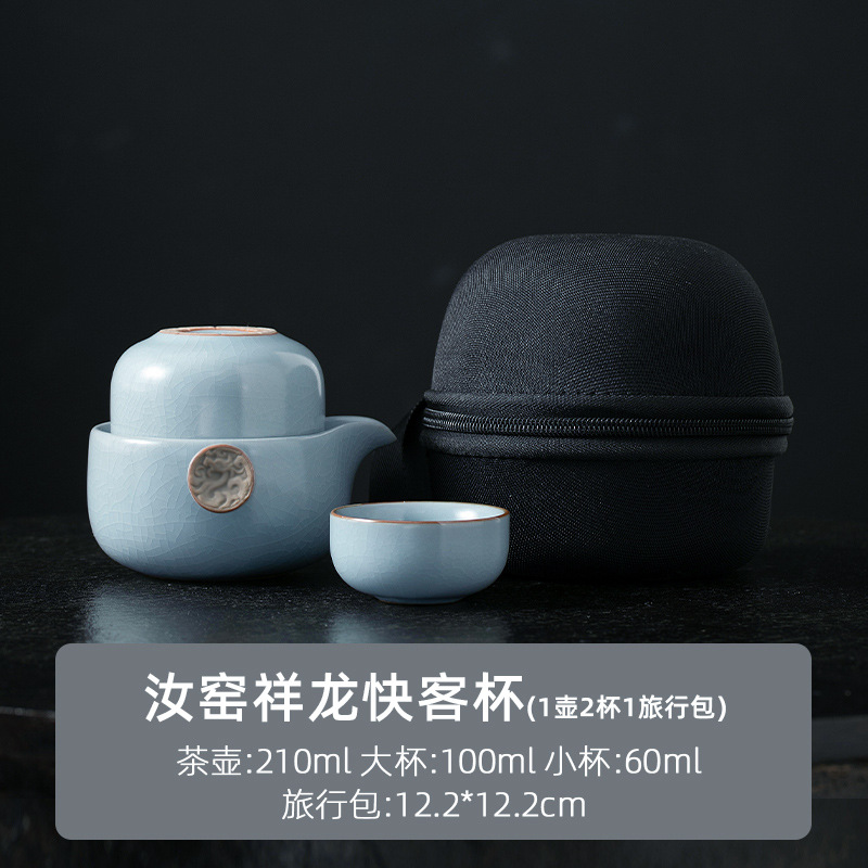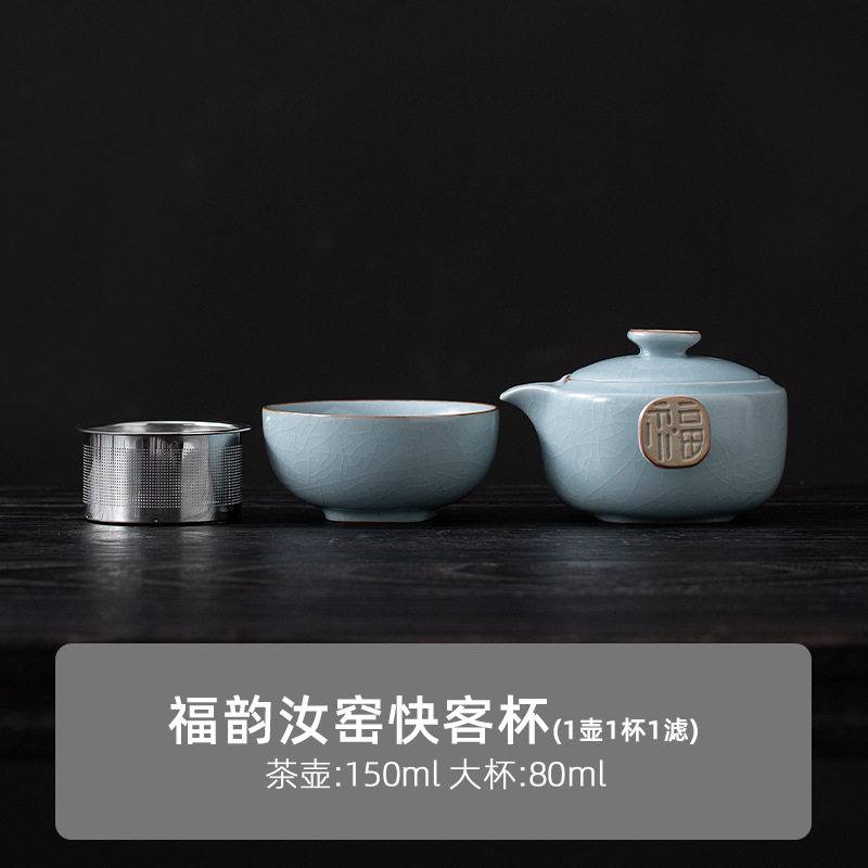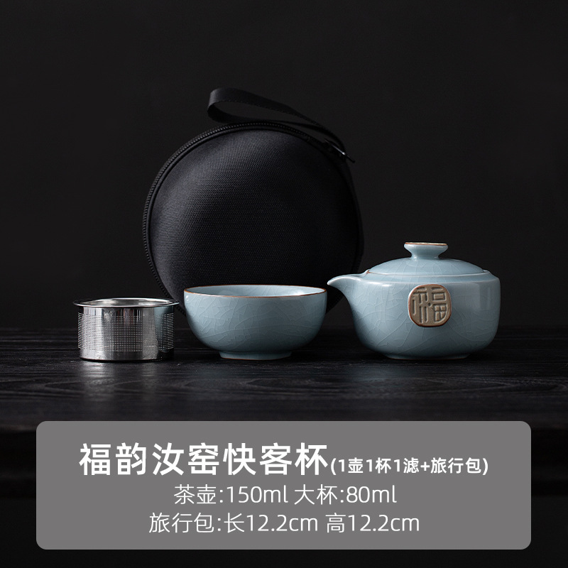 Ru Kiln 익스프레스 컵 1 포트 1 컵 야외 휴대용 찻주전자 찻잔 휴대용 여행 차 세트