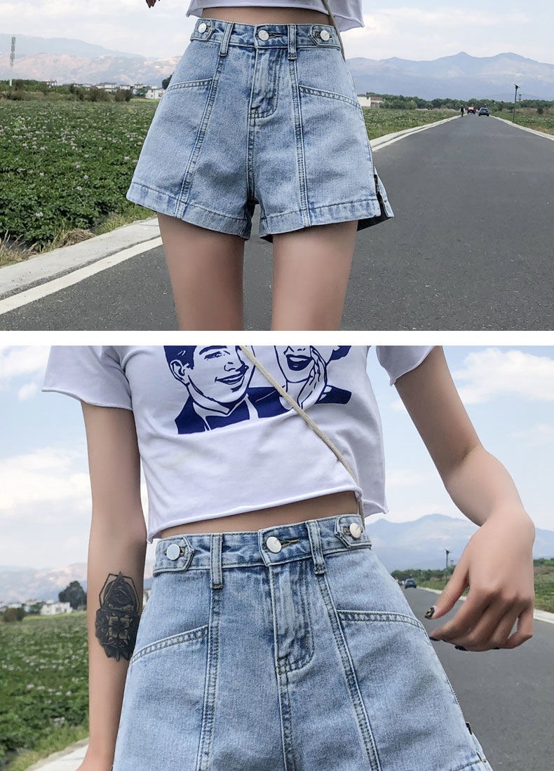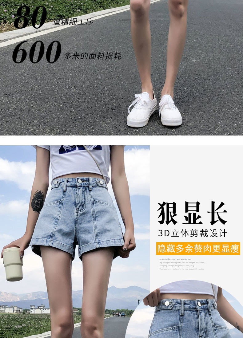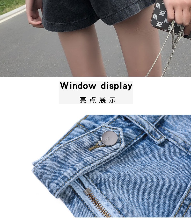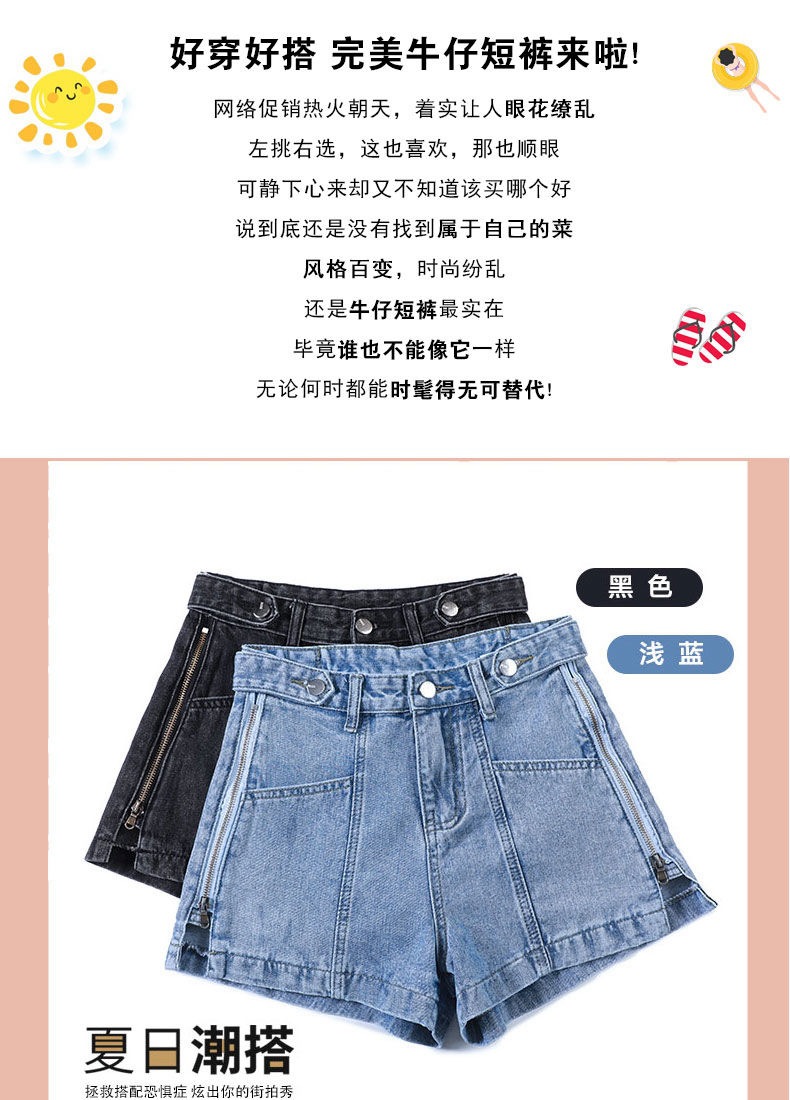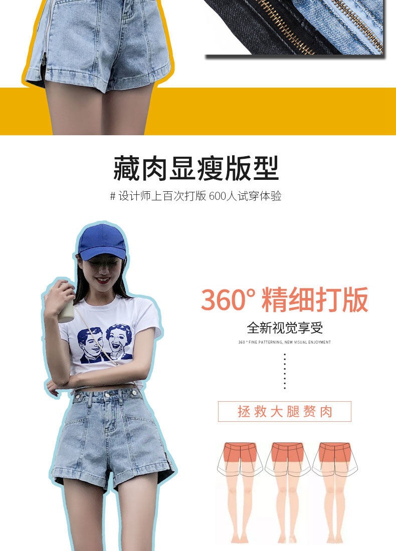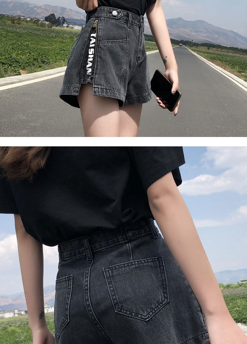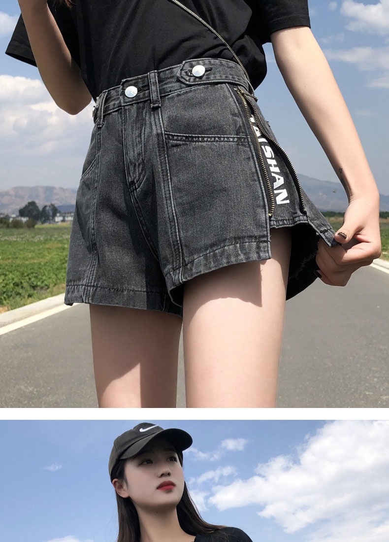인터넷 연예인 얇은 데님 반바지 여성용 하이 웨이스트 2021 여름 새로운 슬리밍 a-word 와이드 레그 사이드 지퍼 편지 핫 팬츠 에 유행스토어 가기