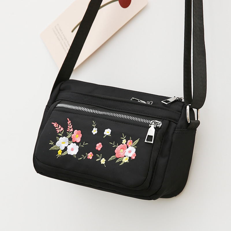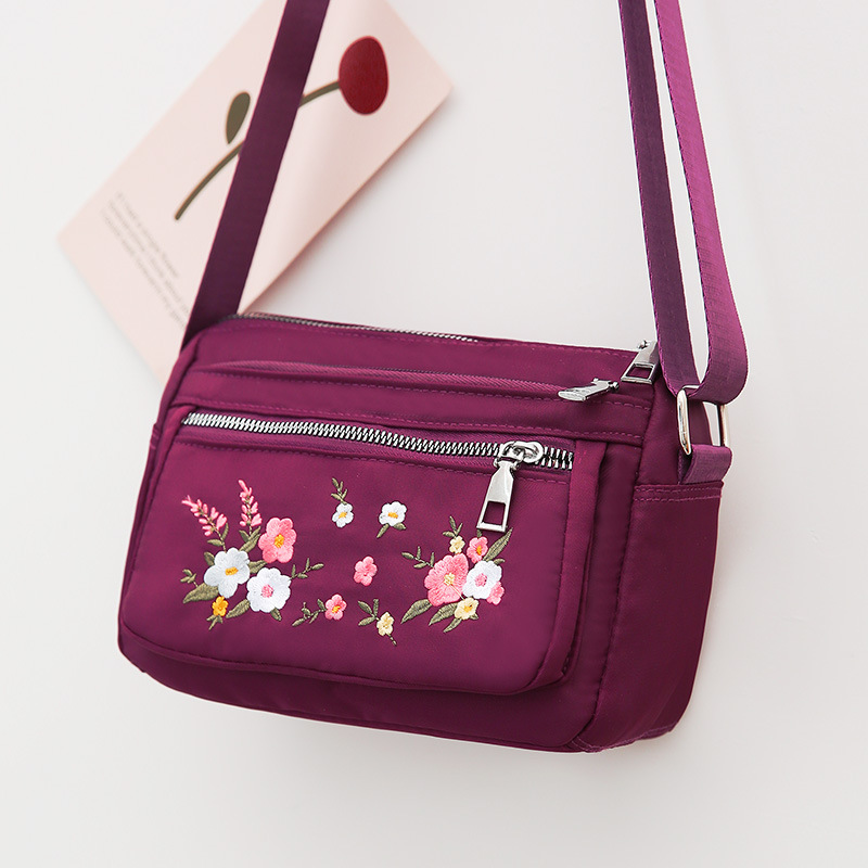 새로운 자수 중년 어머니 스몰 백 나일론 여성용 가방 크로스바디 백 싱글 숄더 캔버스 여성용 경량 다층 캐주얼 가방