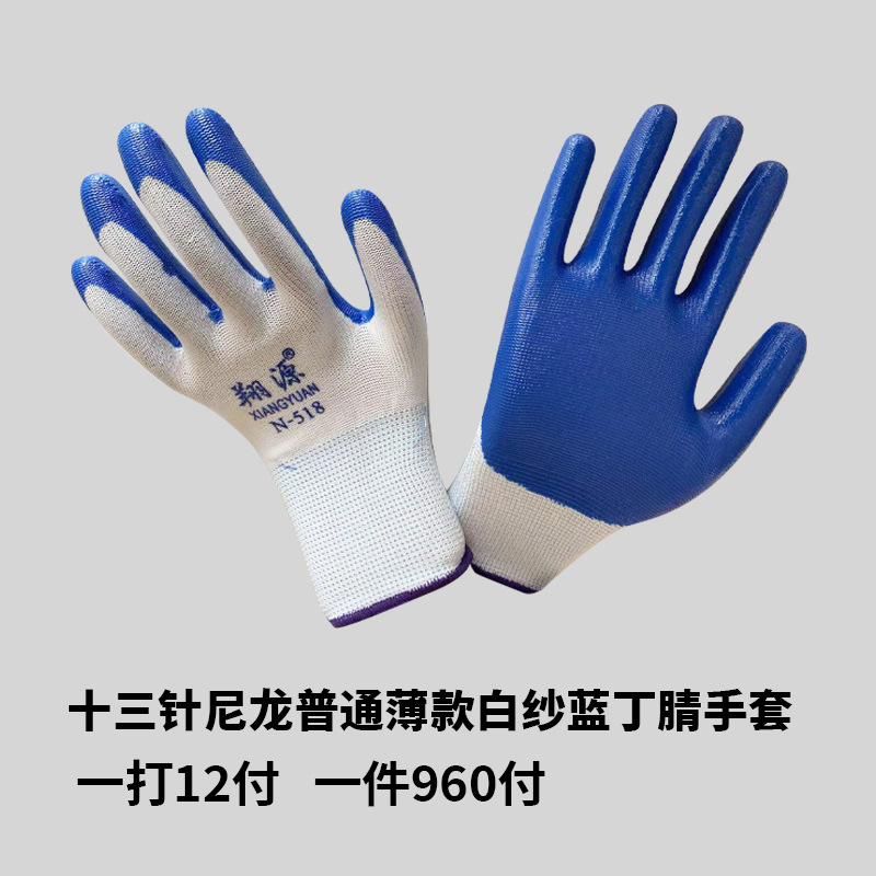 도매 13 바늘 나일론 니트릴 담근 장갑 노동 보호 Ding Qing 반 접착제 마모 방지 작업 보호 노동 보호 장갑