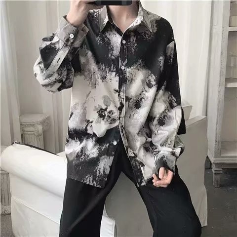 Hongxinjie 헤어 스타일리스트 긴 소매 셔츠 소년 잘 생긴 한국 남성 온라인 빨간색 Ruffian 잘 생긴 셔츠 매우 요정 옷