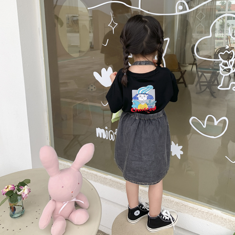 어린이 티셔츠 반팔 100 면 한국 스타일 느슨한 서양 스타일 여름 2022 새로운 스타일 소녀를위한 중대형 어린이 탑스토어 가기