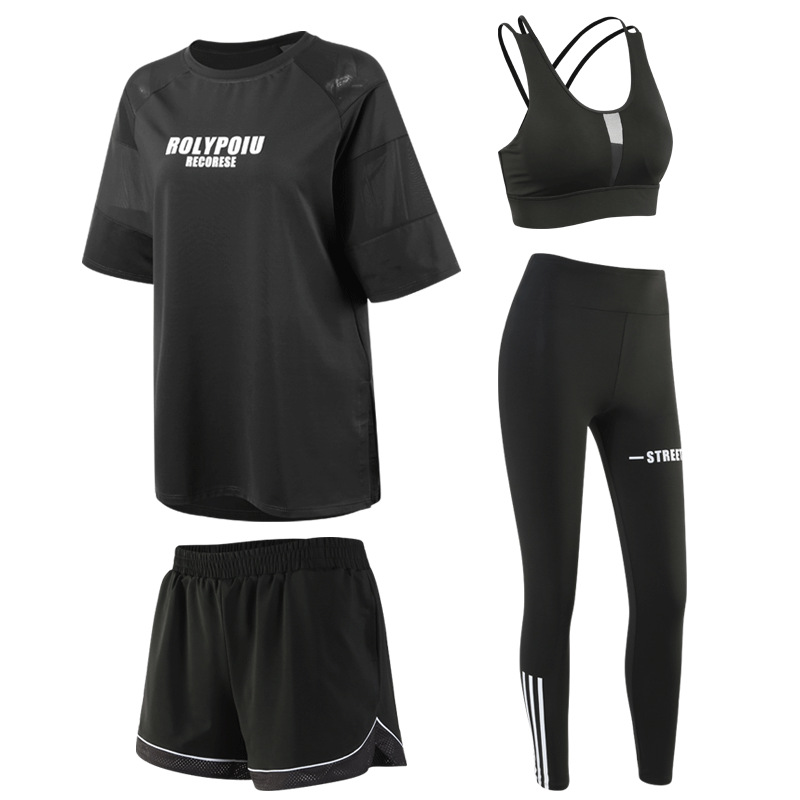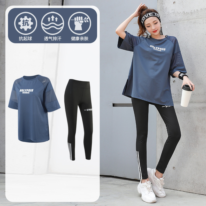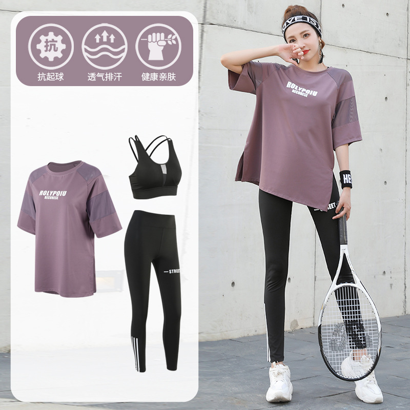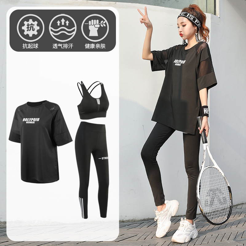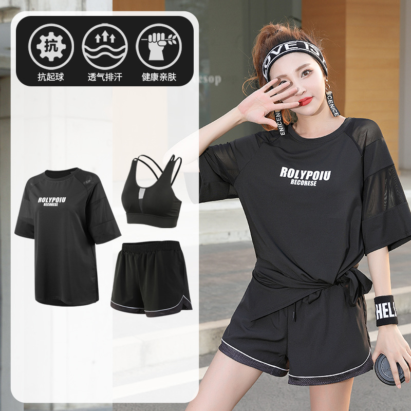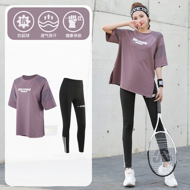 J215 메쉬 요가 의류 여성 플러스 사이즈 240kg 착용 할 수있는 느슨한 짧은 소매 여성 가슴 패드 달리기 스포츠 운동 옷