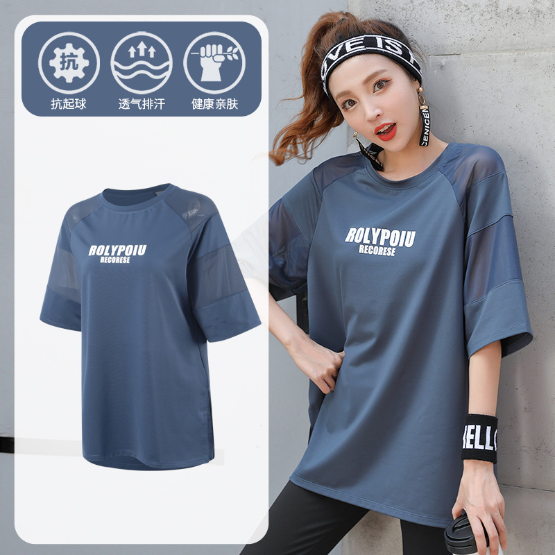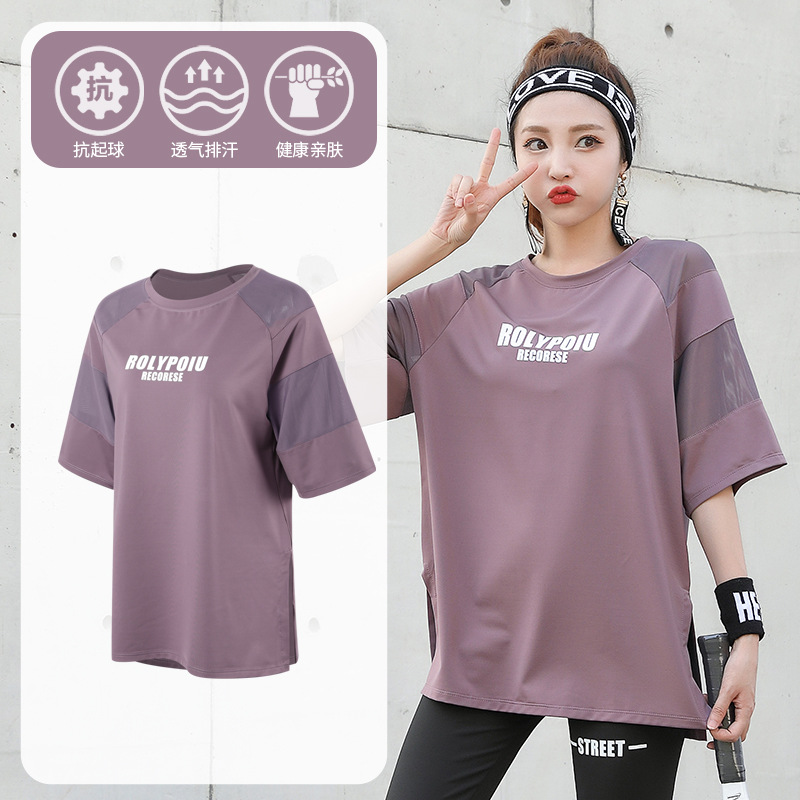 J215 메쉬 요가 의류 여성 플러스 사이즈 240kg 착용 할 수있는 느슨한 짧은 소매 여성 가슴 패드 달리기 스포츠 운동 옷스토어 가기