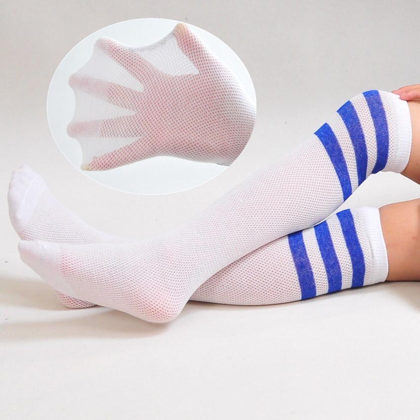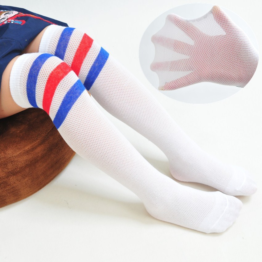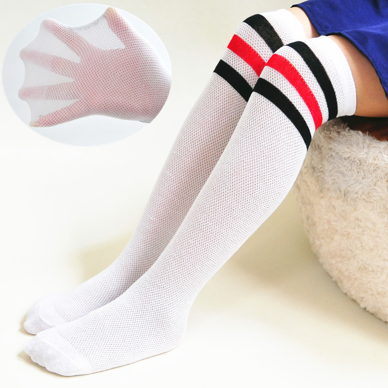 학생 어린이 양말의 엄격한 선택 3 바 미드 튜브 양말 메쉬 스트라이프 스타킹 통기성 높은 튜브 어린이 양말 무릎 높이 양말