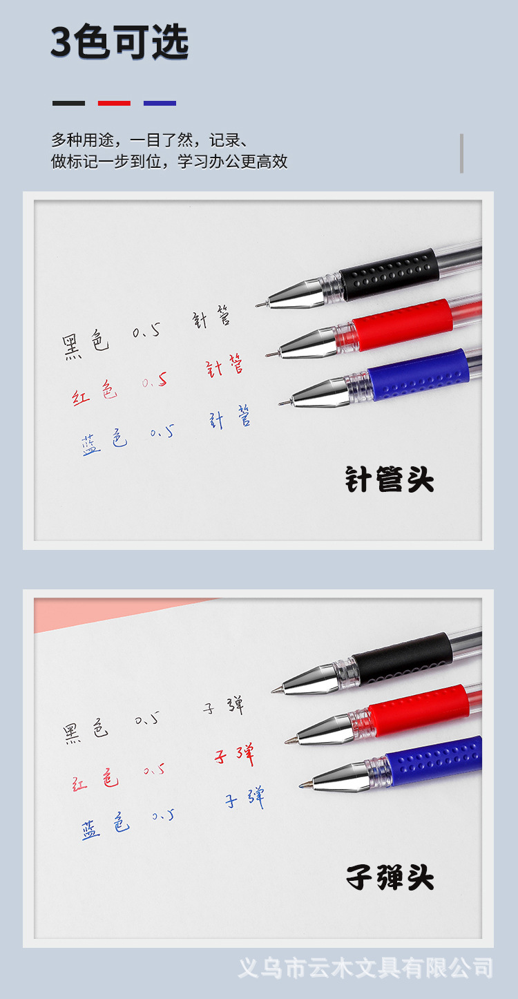 도매 유럽 표준 펜 검은 총알 바늘 머리 0.5mm 탄소 펜 물 펜 젤 펜 서명 펜