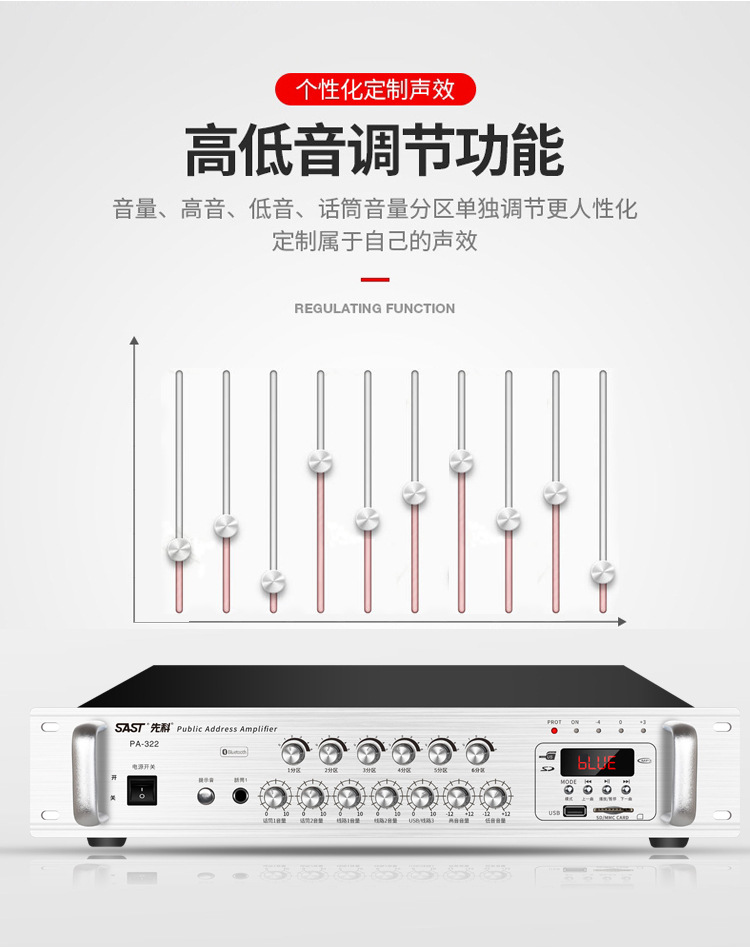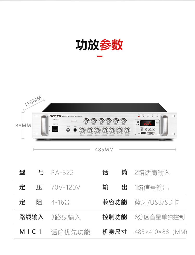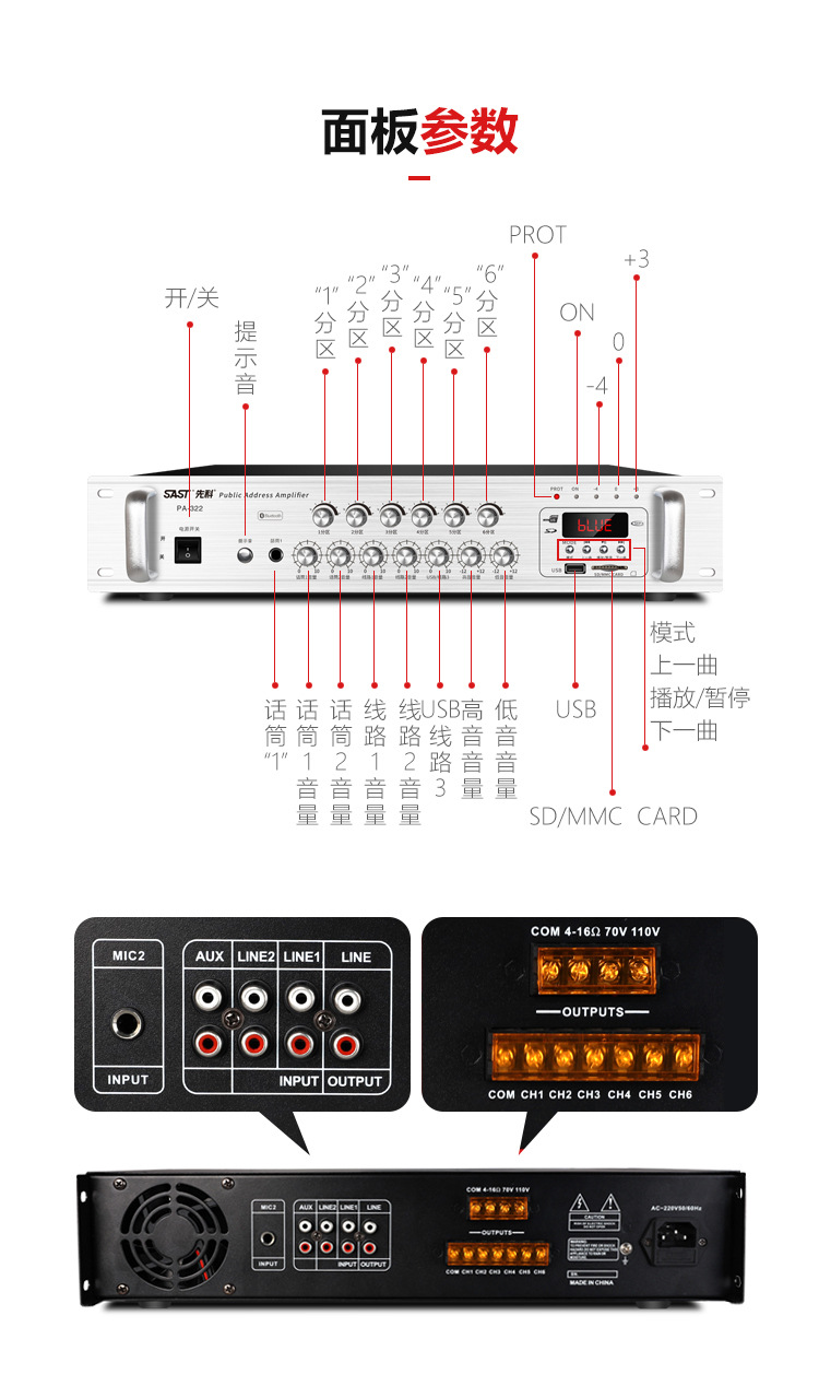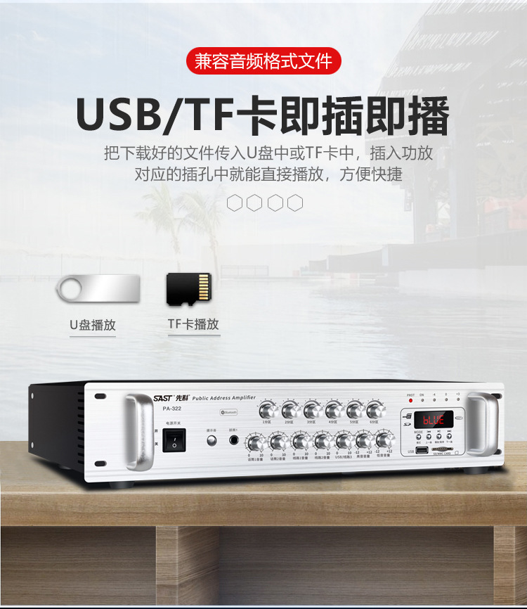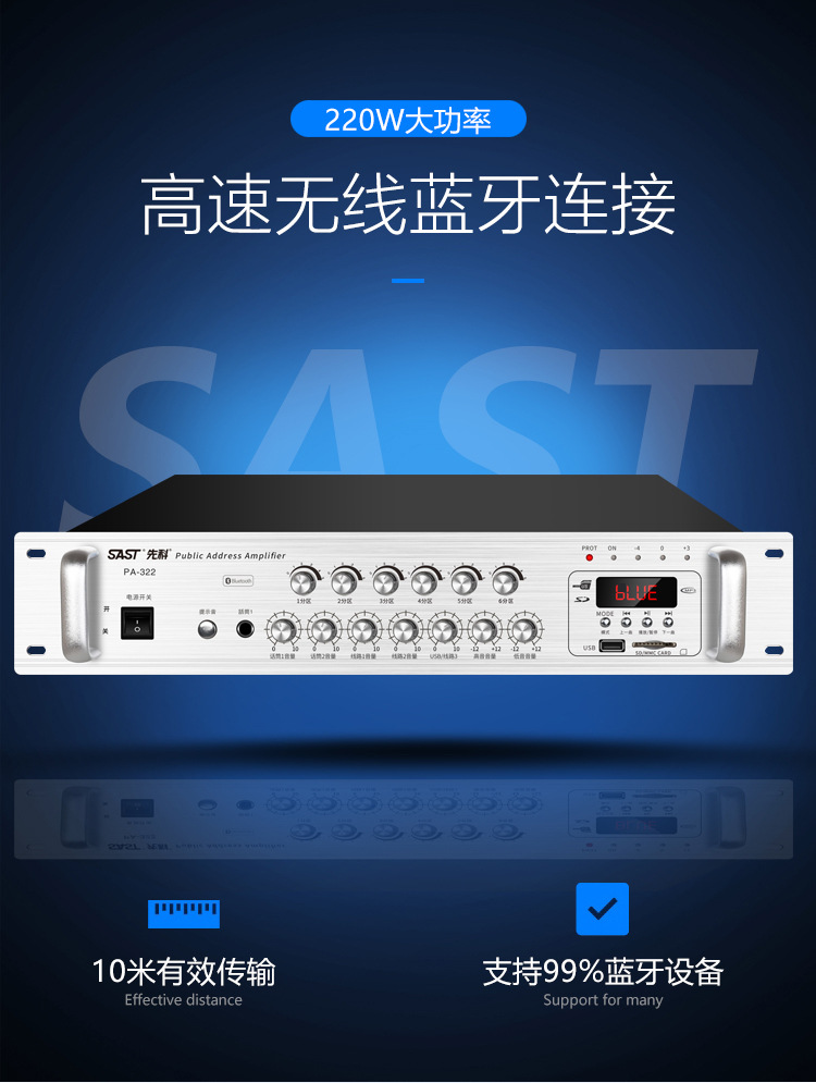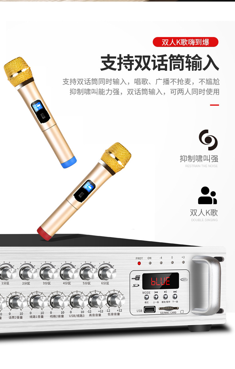 Xianke 고출력 블루투스 고정 압력 및 저항 전력 증폭기 캠퍼스 공공 방송 시스템 5 파티션 전력 증폭기스토어 가기