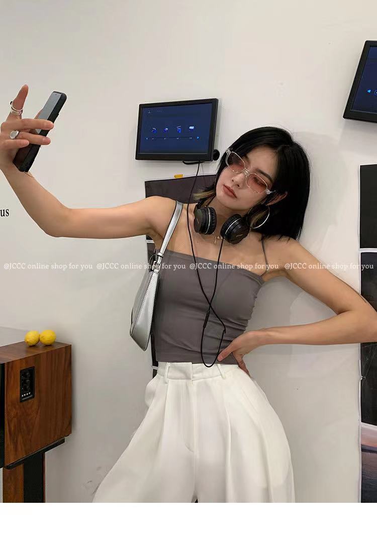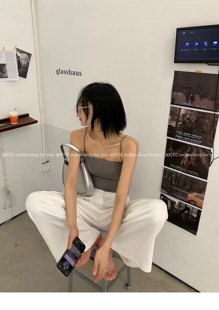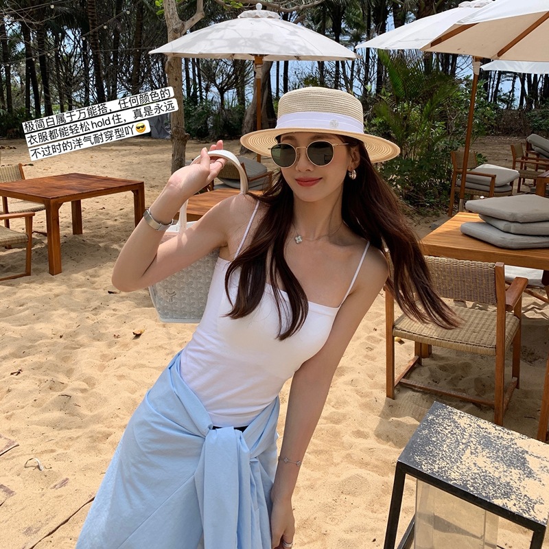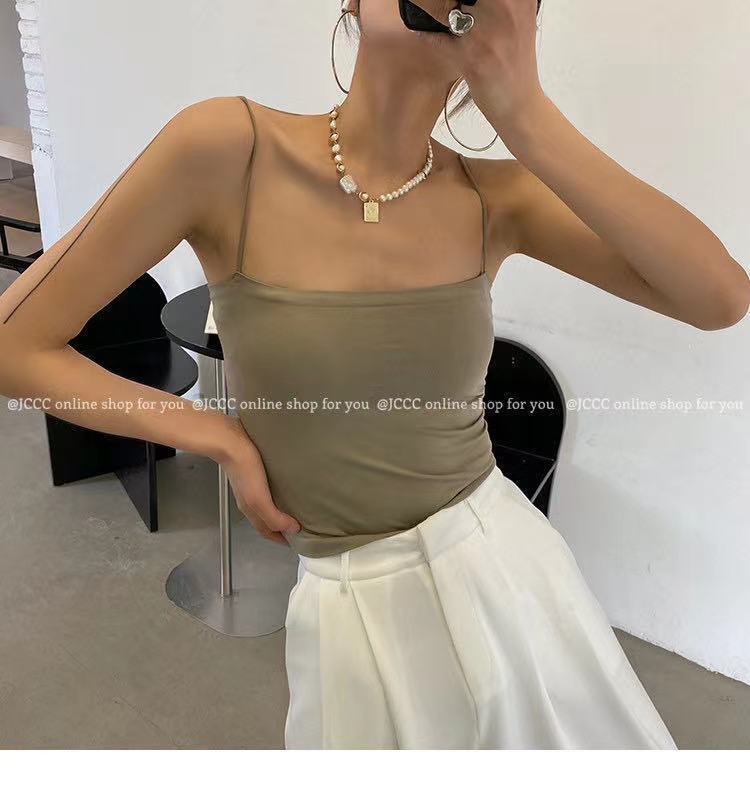아이스 실크 솔리드 컬러 캐미솔 여성용 원피스 가슴 패드 아우터 착용 아름다운 백 탑 비 테 베이스 튜브 탑 속옷스토어 가기