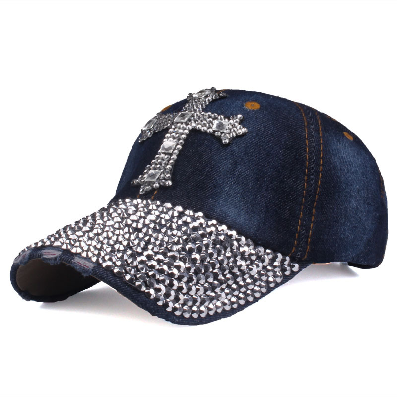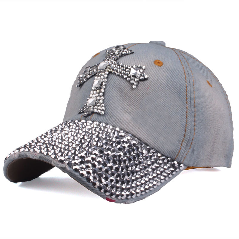 모자 여성용 다이아몬드 박힌 야구 모자 크로스 라벨 캡 야외 캐주얼 차양 태양 모자 트렌디스토어 가기